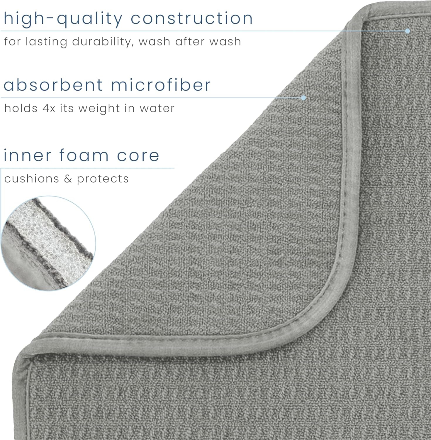 - One S&T INC. Microfiber Dish Dry Mat measuring 16 in. x 18 in.; kitchen mat for countertop absorbs up to 4 times its weight in water to keep your countertop dry, unlike a silicone dish drying mat