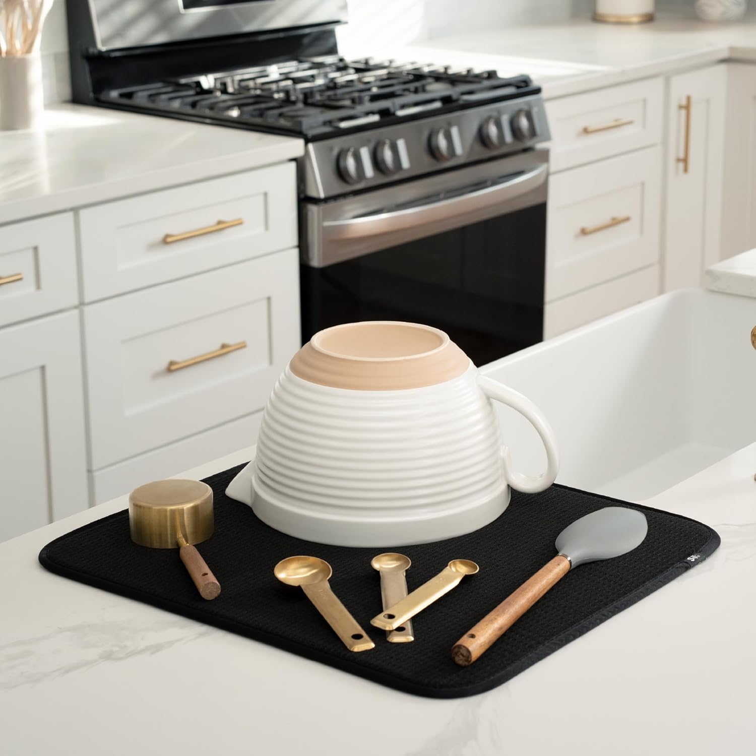 S&T INC. Dish Drying Mat, 16” x 18”, Absorbent Microfiber Kitchen Counter Mat, Dish Drying Pad for Dishes, Utensils, Pots and Pans, Large, Black
