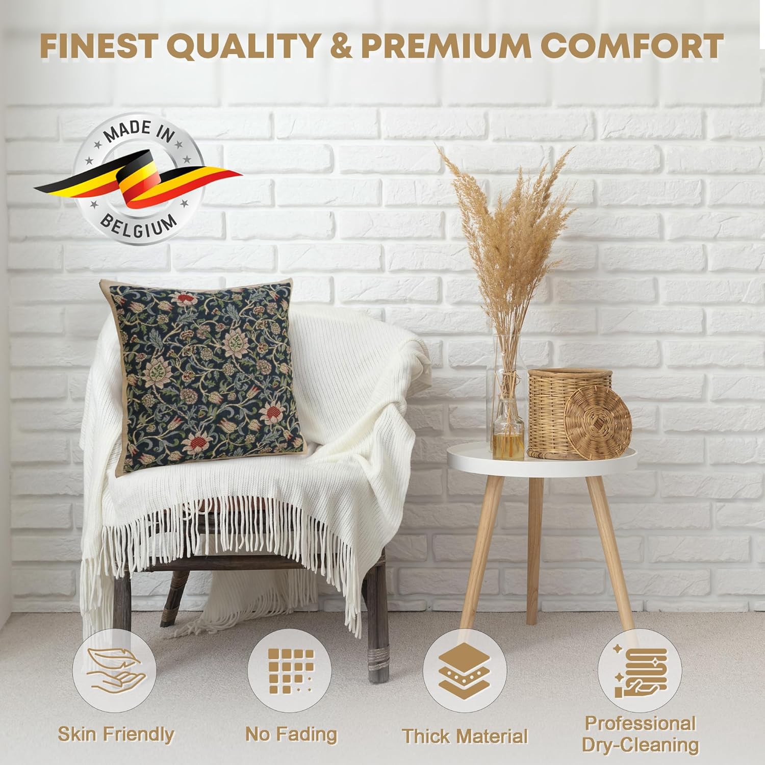 - Impeccable Craftsmanship: Are you searching for the perfect ambiance for your loved ones? Say goodbye to the crappy throw pillow cover and experience the epitome of Jacquard fabric decorative pillow covers made with high-quality 100% cotton. Elevate the aesthetics of your living space using our blue flower tapestry pillow covers. Impress your guests with our carefully crafted handmade covers, created by artisans in Belgium on woven panels to add splendid details to your decor
