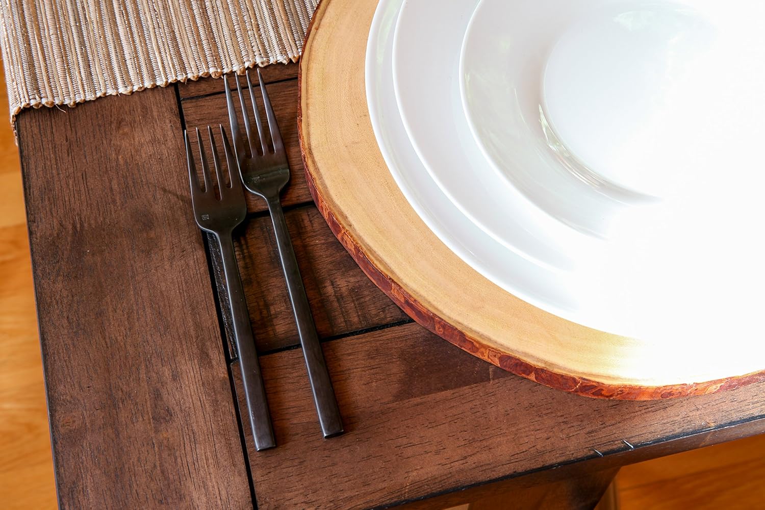 - 360° design - pattern design appears on front and back on every piece; polished fork tines; finely serrated knife blade and solid handles knives