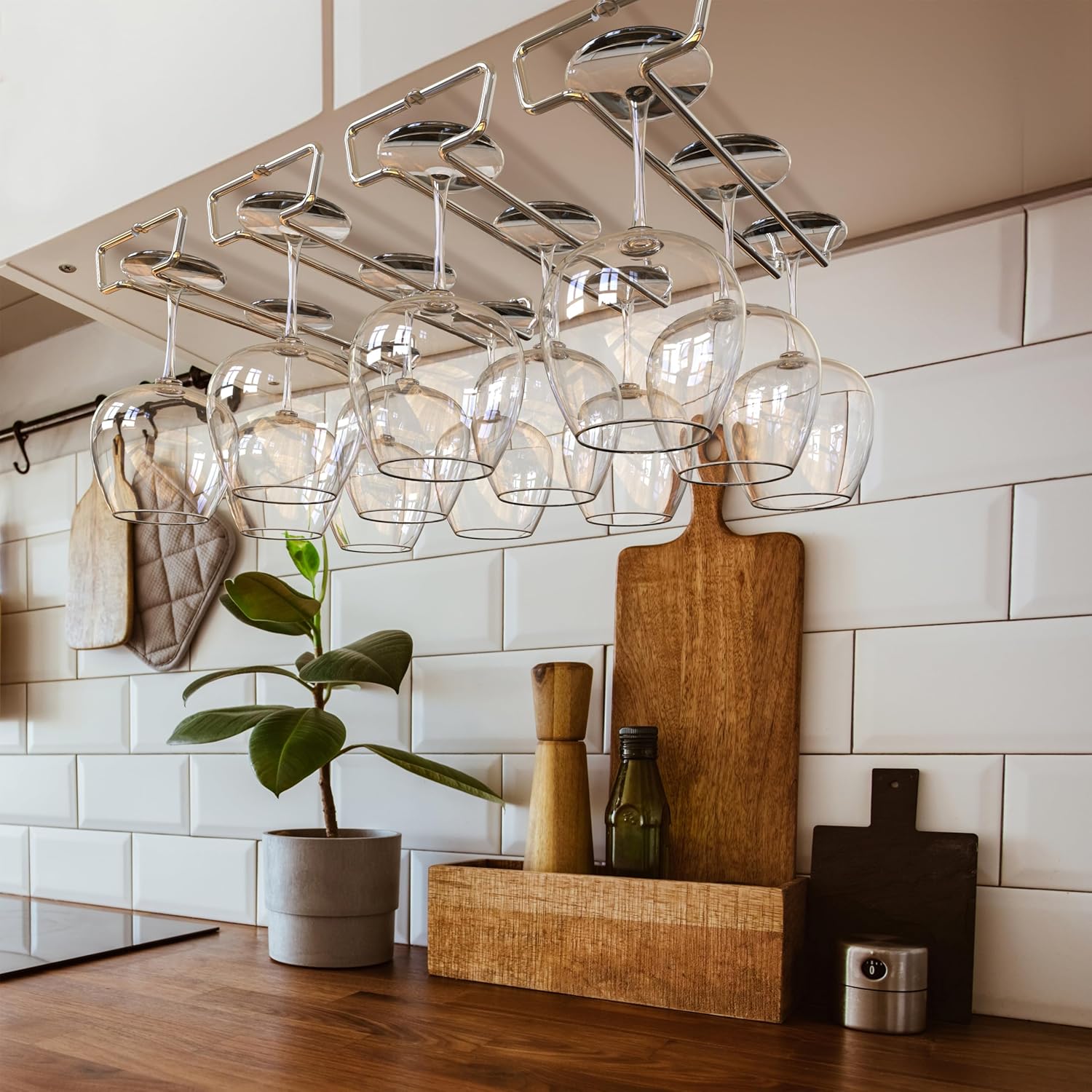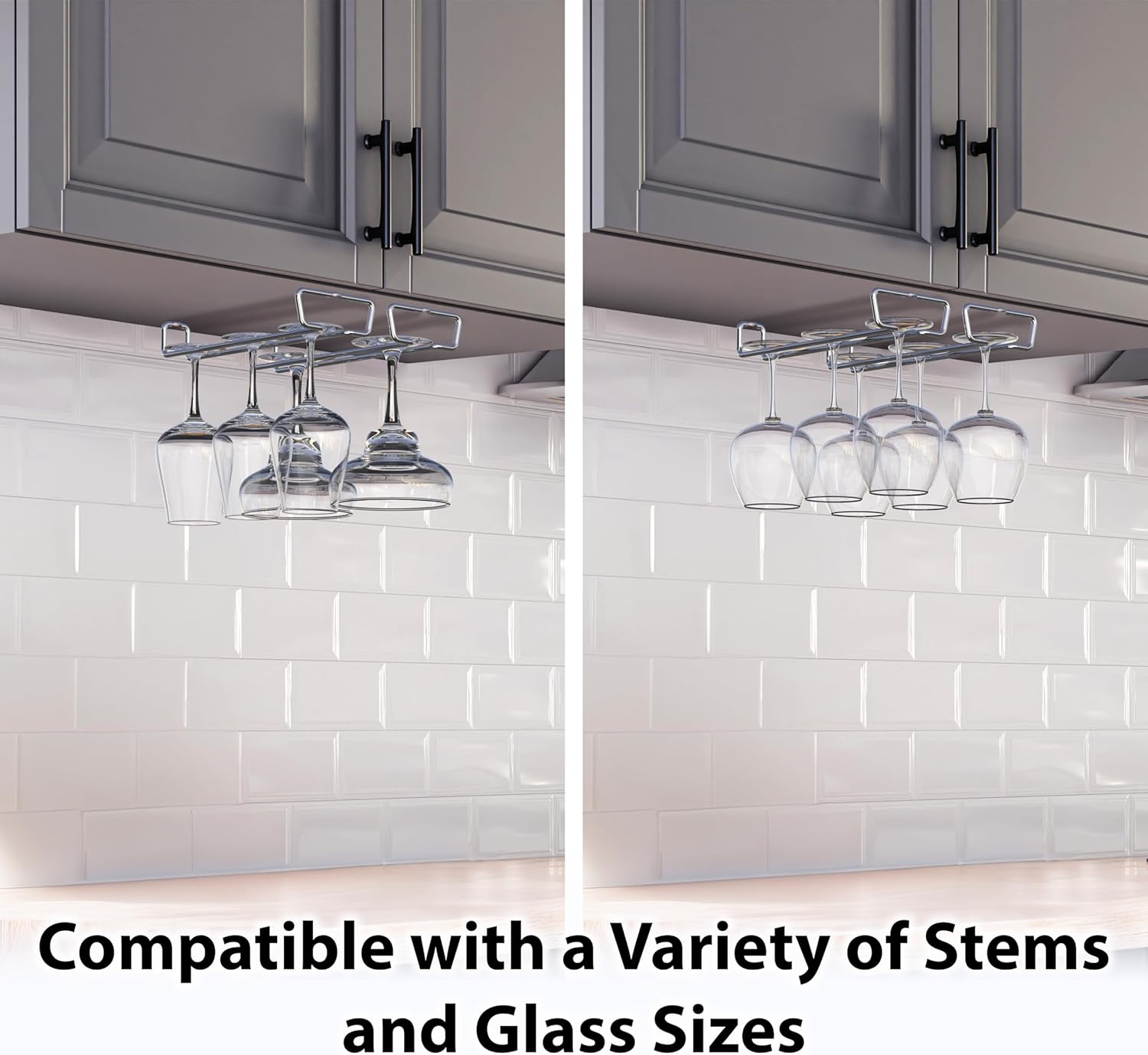 DecoBros 2PK Single Rail Wine Glass Stemware Rack Holder, Chrome