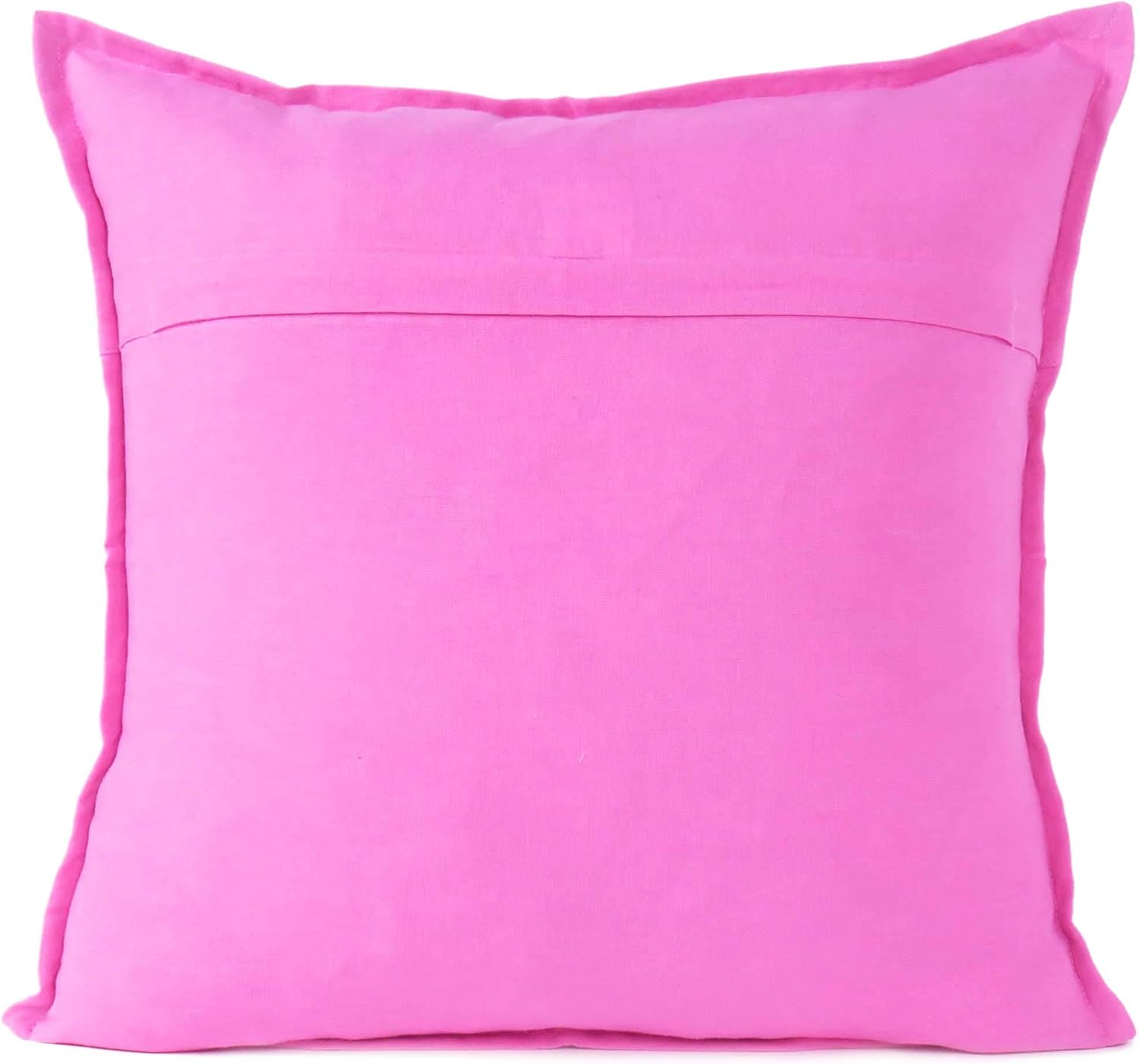 Eyes of India Embroidered Decorative Boho Throw Pillow Cover with Mirrors, Handmade Bohemian Accent Cushion Case for Sofa Couch Bedroom Living Room (Pink, 16" x 16")