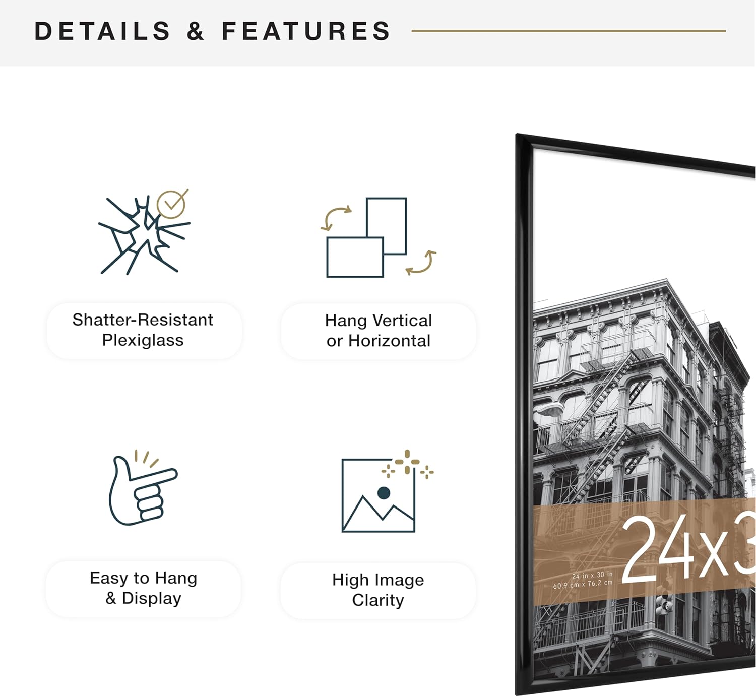 MCS Trendsetter 24x30 Poster Frame Black High-Gloss, Vertical & Horizontal Wall Hanging Large Picture Frame for Photos, Posters & Art Prints (1-Pack)