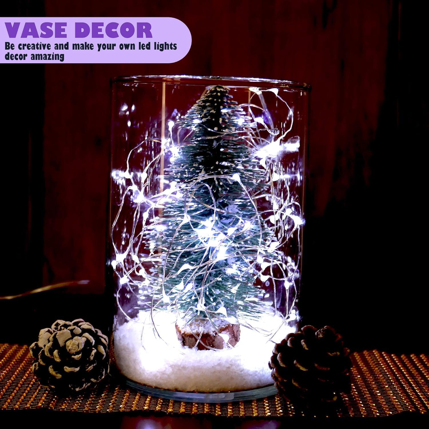 - Battery Operated Fairy Lights:6pcs lights per packing,battery compartment extension cord is 0.6ft,each light is with 9.5 feet flexible thin silvery copper wire with 30pcs bright micro leds, Cool White Light(color temperature 6000-8000K). They glint in the dark, perfect to decorate your patio, deck, front porch, child's bedroom,Festival, Xmas,Floral Decoration,Wedding,and Party. And the silvery copper wire disappeared into the night, Leaving only light.
