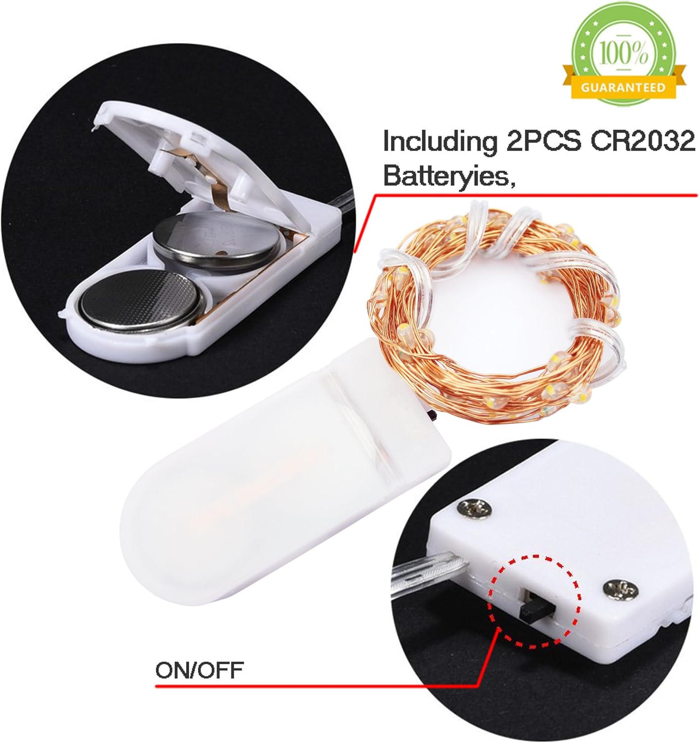 - Battery Operated Fairy Lights:6pcs lights per packing,battery compartment extension cord is 0.6ft,each light is with 9.5 feet flexible thin copper wire with 30pcs bright micro leds,Warm white Light(color temperature 2000-2600K). They glint in the dark, Decorate your patio, deck, front porch, child's bedroom,Festival, Xmas,Floral Decoration,Wedding,and Party. And the silvery copper wire disappeared into the night, Leaving only light.