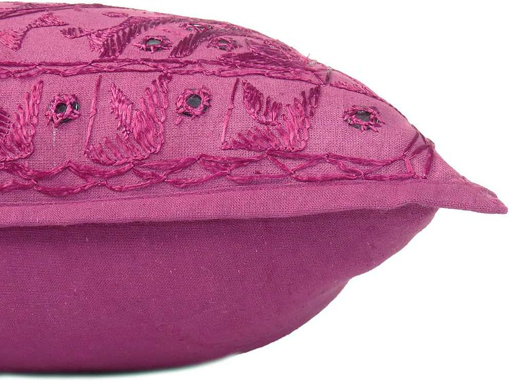 Eyes of India Embroidered Decorative Boho Throw Pillow Cover with Mirrors, Handmade Bohemian Accent Cushion Case for Sofa Couch Bedroom Living Room (Burgundy, 24" x 24")