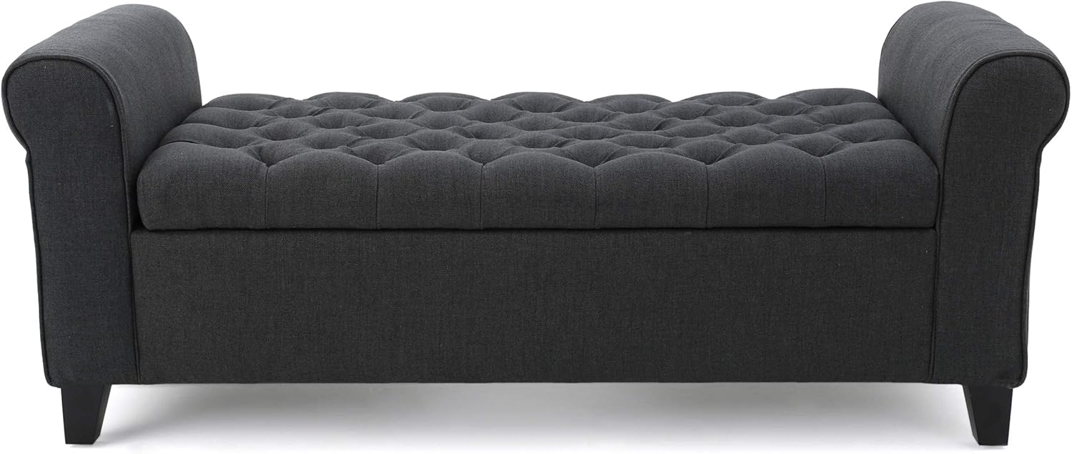 Christopher Knight Home Keiko Fabric Armed Storage Bench, Dark Grey, 19.50”D x 50.00”W x 19.25”H