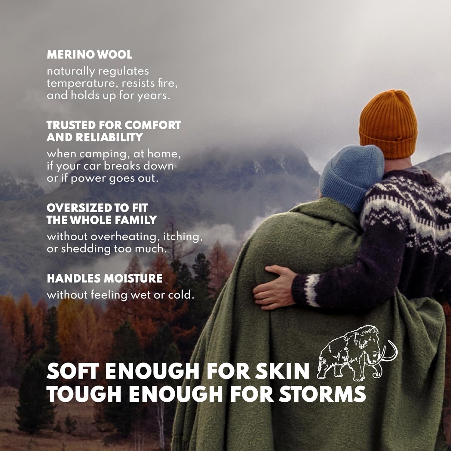 - Premium Merino Warmth: Our wool camping blankets measure 66" x 90" and are crafted from 80% premium Merino wool, ensuring enhanced durability and resistance to wear. The double-stitched polyester edging allows this blanket to withstand years of use