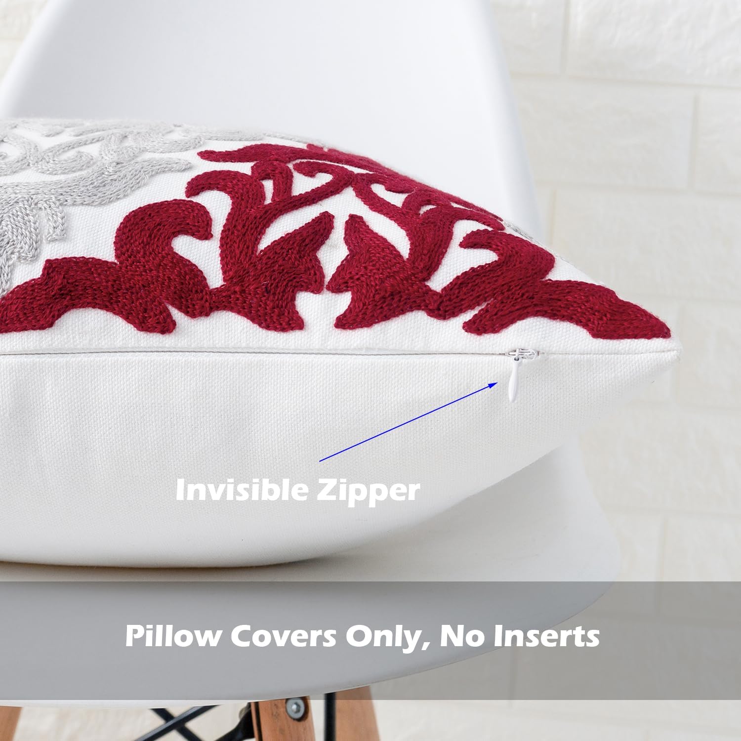 HWY 50 Burgundy Red Decorative Throw Pillow Covers 18x18 Inch (1 Piece), Embroidered Cotton Farmhouse Cushion Cover Pillow Case for Sofa Couch Living Room Bed Bedroon, Floral Geometric