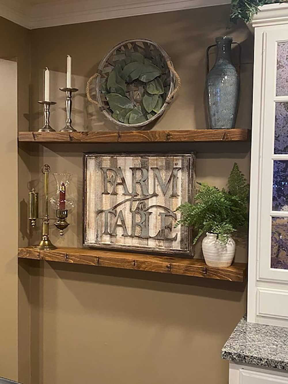 joelsantiques Floating Shelf, Wood Wall Shelf, Natural Wooden Home Decor for Bathroom Kitchen Bedroom, Hanging Mounted Invisible Bracket (Medium Brown, 7" Deep x 42" Wide)