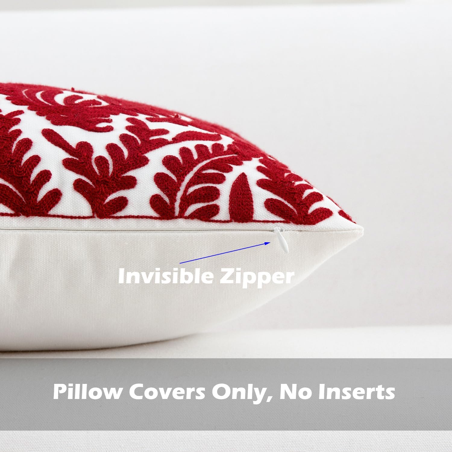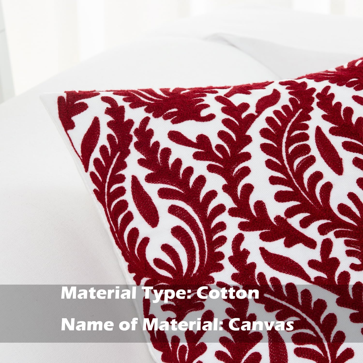HWY 50 Burgundy Red Decorative Throw Pillow Covers 18x18 Inch (1 Piece), Embroidered Cotton Farmhouse Cushion Cover Pillow Case for Sofa Couch Living Room Bed Bedroon, Floral Branches