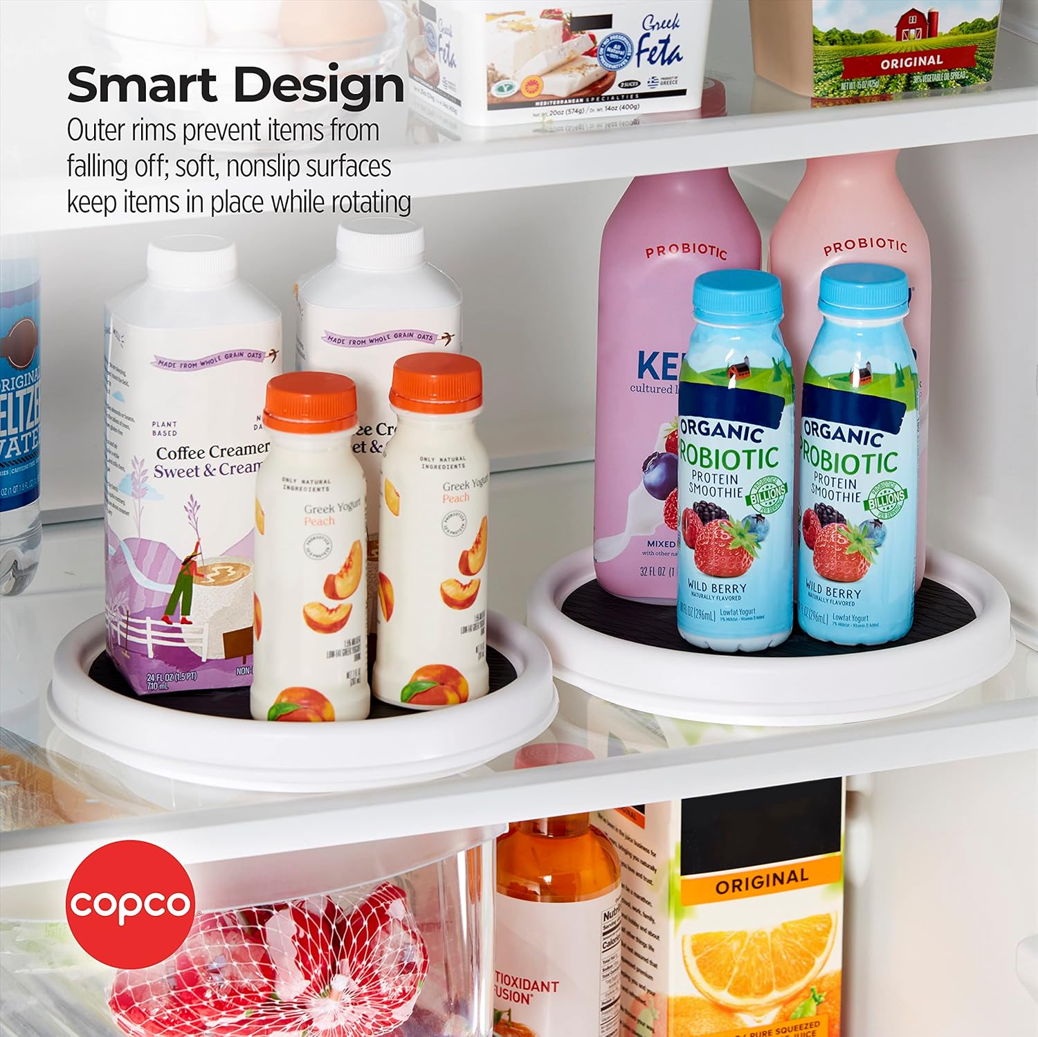 Copco 9 Inch Non Skid Pantry Cabinet Lazy Susan Turntable, Set of 2, Spinning Organizer for Kitchen, Countertop, or Bathroom, White and Gray