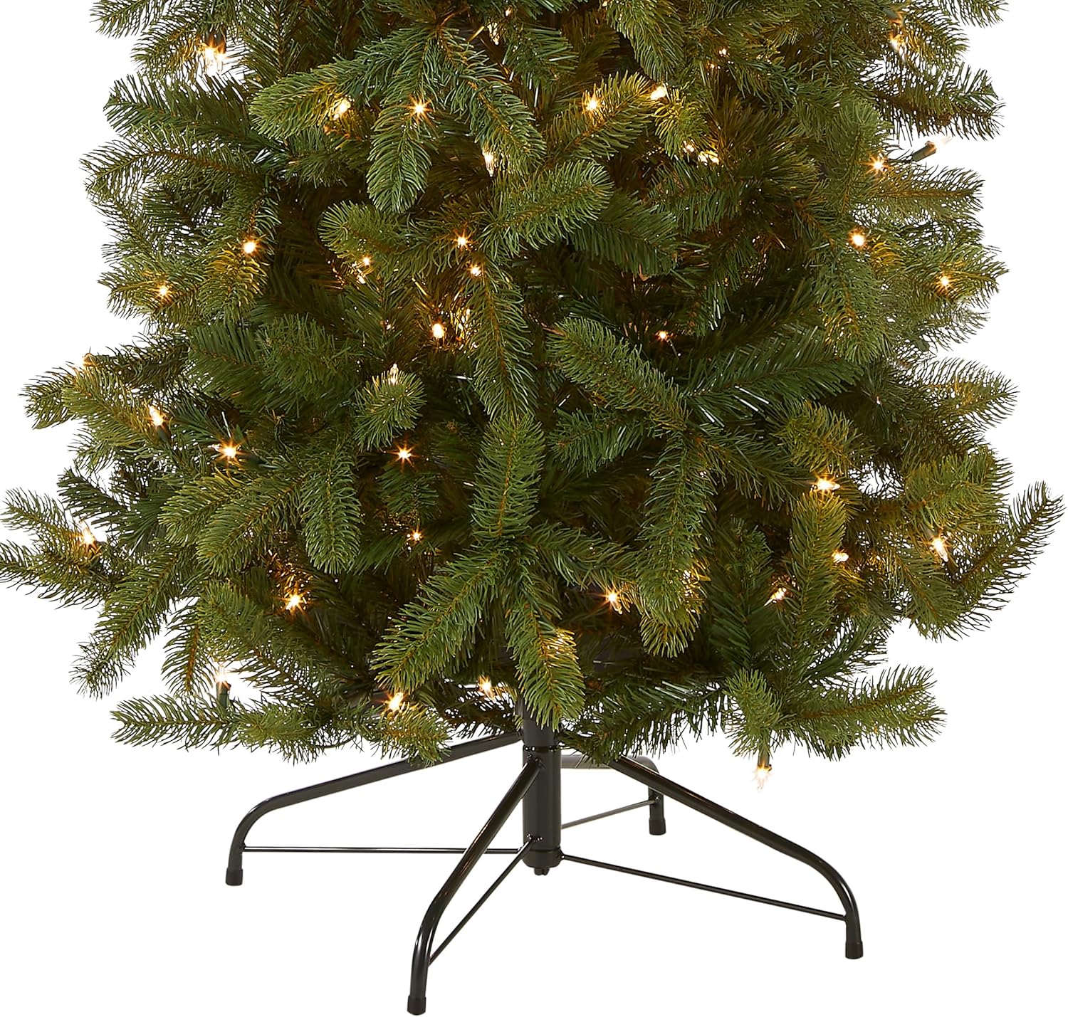 National Tree Company Pre-Lit 'Feel Real' Artificial Slim Downswept Christmas Tree, Green, Douglas Fir, White Lights, Includes Stand, 6.5 feet