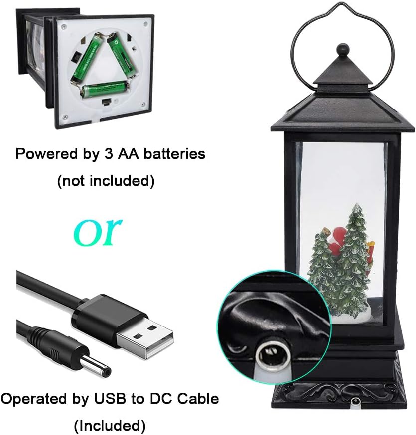 - ★POWER SUPPLY: Included USB to DC cable allows you operate the snow globe lantern without batteries. You can also operate it with 3 AA batteries, so that you can place them any where you want