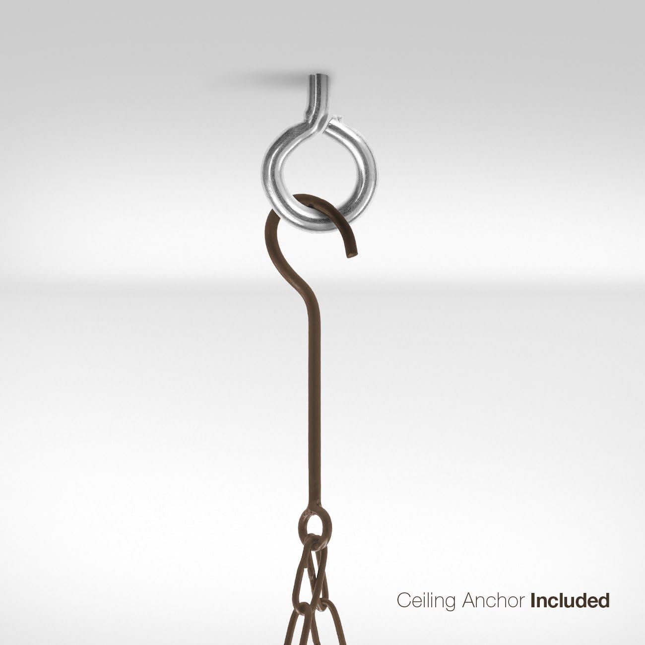 - EASY TO ASSEMBLE — Minimal assembly required with quick set-up — Package includes grid rack with 2 hanging chains, 10 pot hooks, and mounting hardware — Made of metal with powder-coated finish — Beautiful oval frame for stylish look — Complements most light fixtures, appliances, cookware, and design interiors — Measures approximately 31.50" L X 16.50" W X 21" H