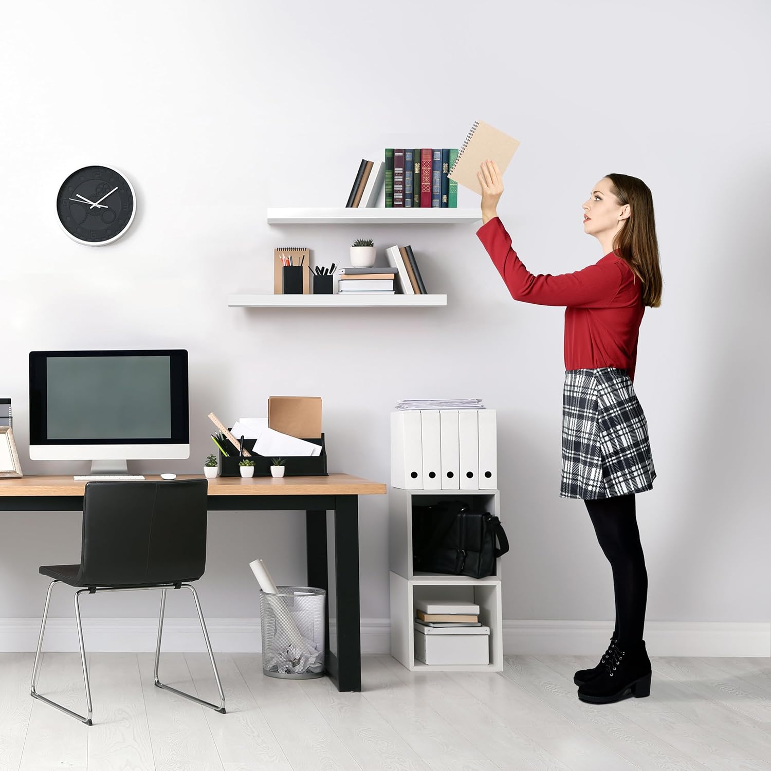 Sorbus Floating Shelves for Wall - 24" Bathroom Shelves, Wall Decor for Bedroom, Kitchen, Living Room, Home Decor & Book Storage - Mounted Floating Shelf with Invisible Brackets (White, 2 Pack)