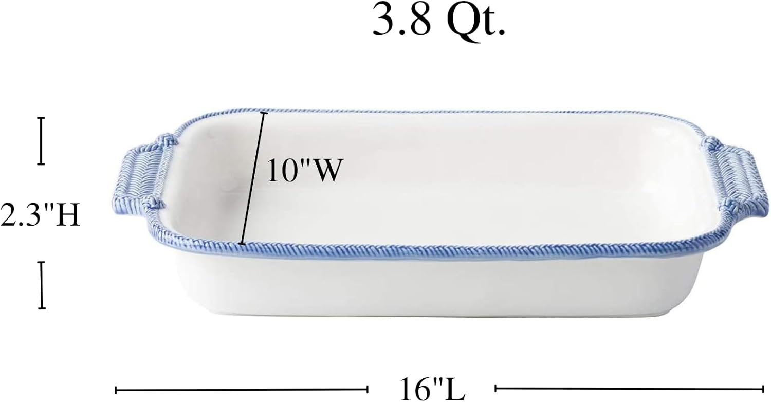 - SOPHISTICATED DESIGN: Le Panier White/Delft Rectangular Baker has a sophisticated and unique design. Made in Portugal and measures 10.0"W x 2.3"H x 16.0"L. 3.8 Qt capacity.