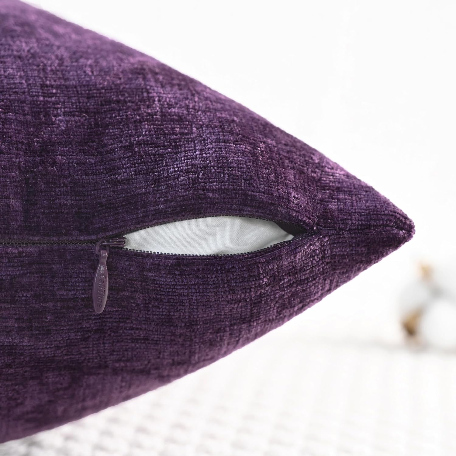 CaliTime Throw Pillow Covers Decorative 20 X 20 Inches Pack of 2 Cozy Chenille Cushion Cases for Couch Sofa Bed Living Room Home Plum Purple