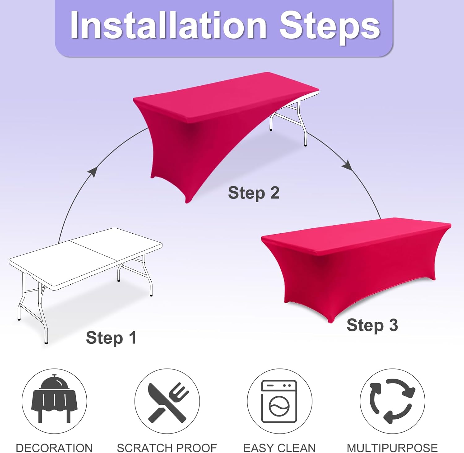 ABCCANOPY 6 FT Spandex Table Cover Stretch Fitted Wrinkle Resistant Tablecloth Reuse for Rectangular Folding Table Patry Event Wedding Banquet Protector Magenta