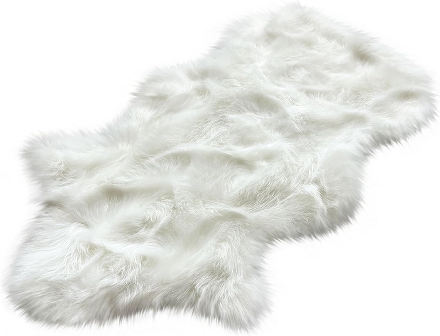 LAMBZY Faux Sheepskin Hypoallergenic Free Shape Silky Shag Rug, Luxury Shaggy Silky Plush Carpet for Bedrooms Rugs Living, Kids Rooms Sofa Floor Rugs (Single and a Half 2'x4', 60x120cm White)