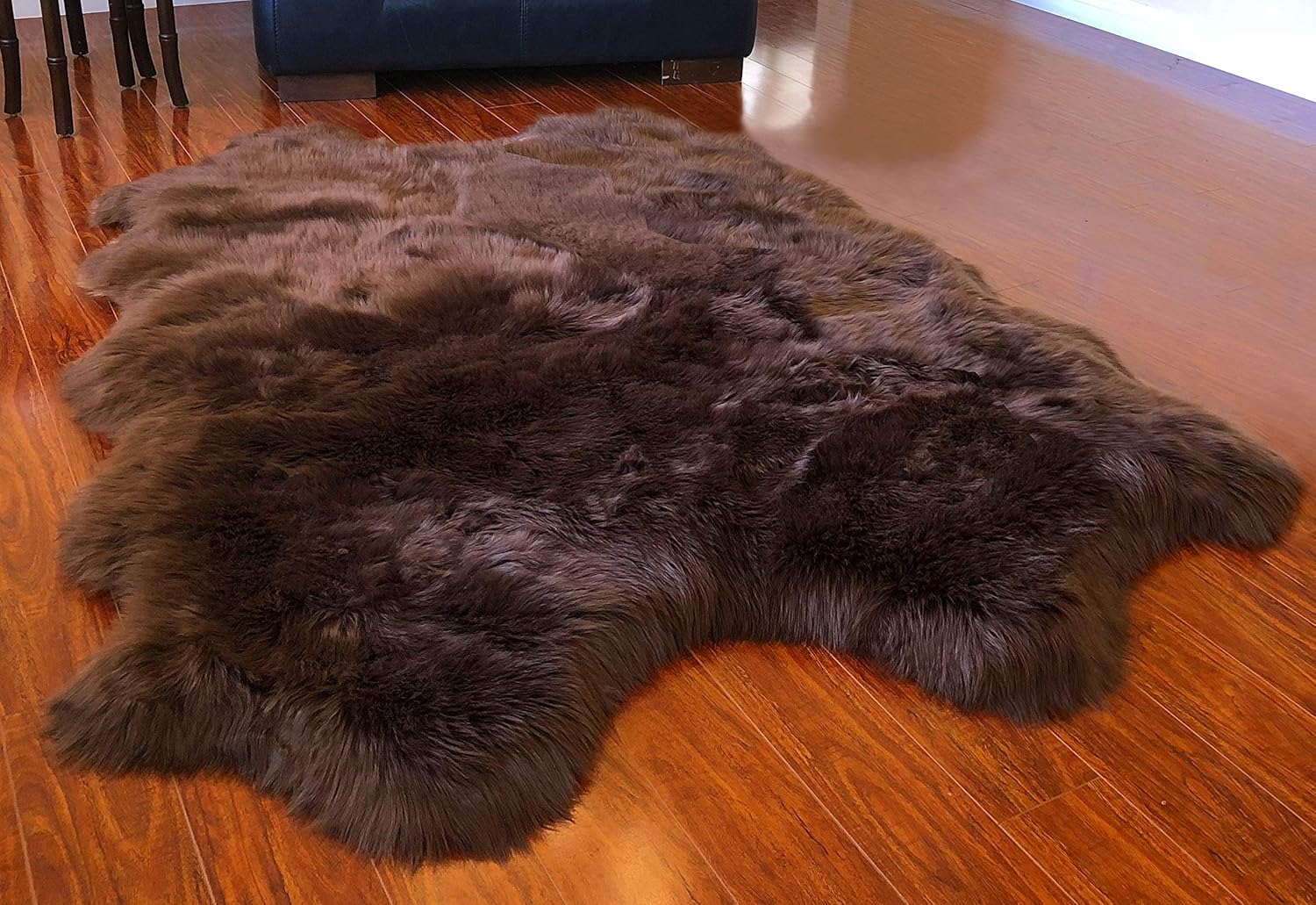 LAMBZY Faux Sheepskin Hypoallergenic Free Shape Silky Shag Rug, Luxury Shaggy Silky Plush Carpet for Bedrooms Rugs Living Room Kids Rooms Sofa Floor Rugs (Quarto 4 Pelts 4'x6', Brown)