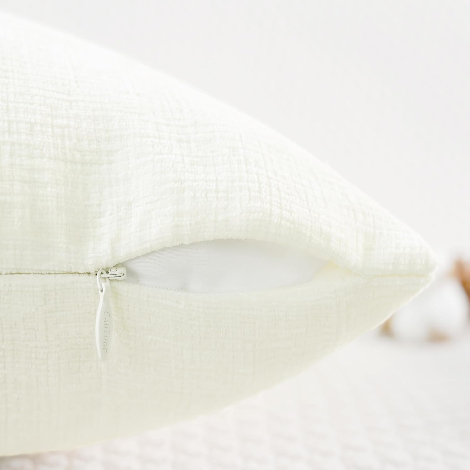 CaliTime Throw Pillow Covers Decorative 18 X 18 Inches Pack of 2 Cozy Chenille Cushion Cases for Couch Sofa Bed Living Room Home Cream
