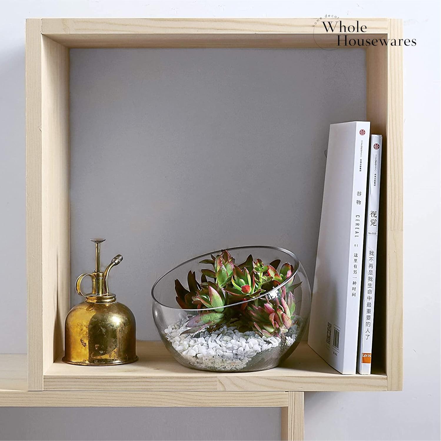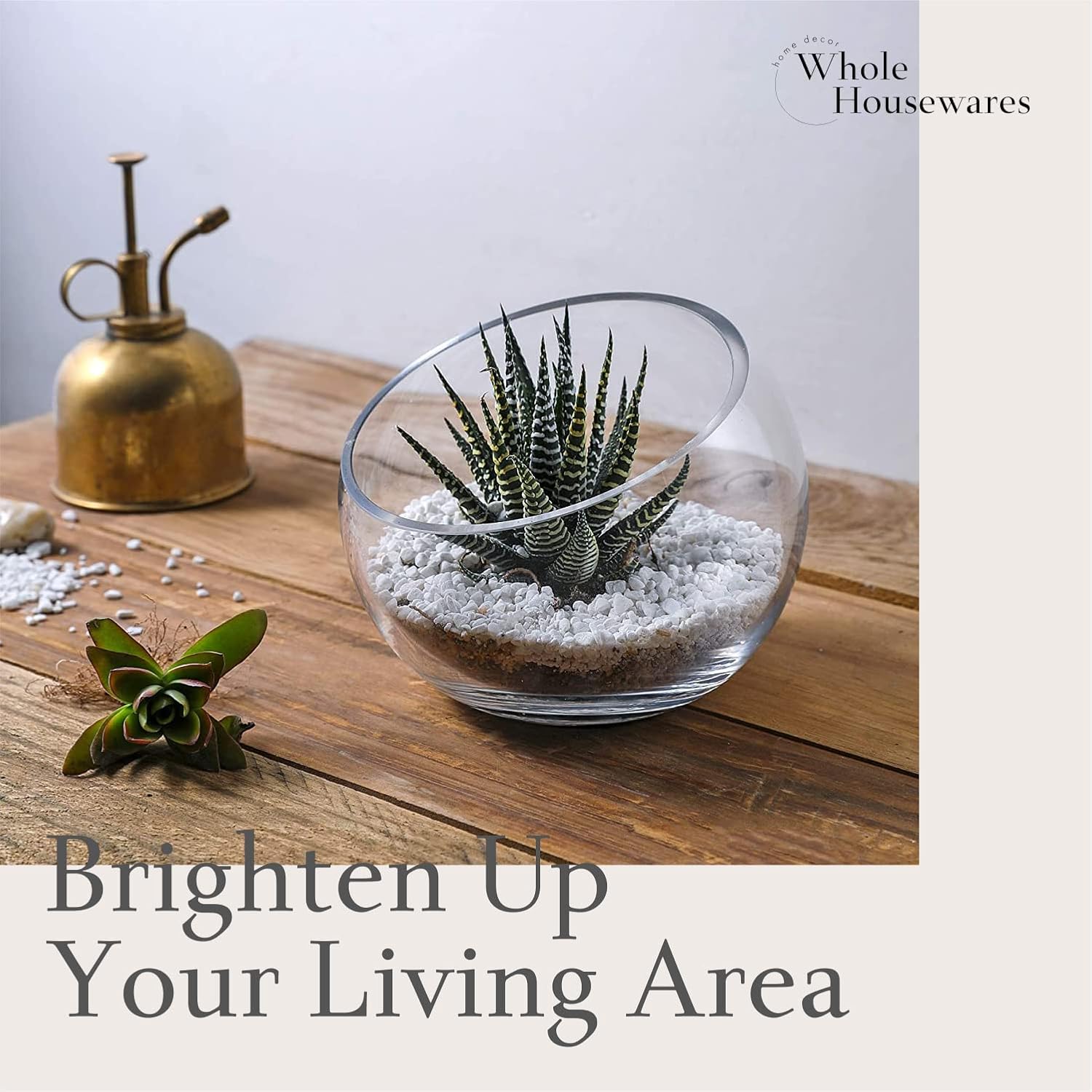 WHOLE HOUSEWARES | Slant Cut Bowl Glass Vase, Width 6.3", Height 5", Clear Terrarium Jar, Candy Jar, Fruit Jar, Floral Container for Wedding Party Event, Home Office Decor, 1 Piece