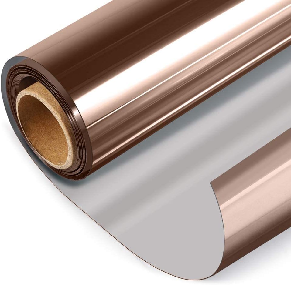 HIDBEA One Way Mirror Window Film, Daytime Privacy Sun Blocking Reflective Window Film Static Cling Heat Control Window Tinting Film for Home and Office, Brown Silver, 35.4 x 98.4 Inch