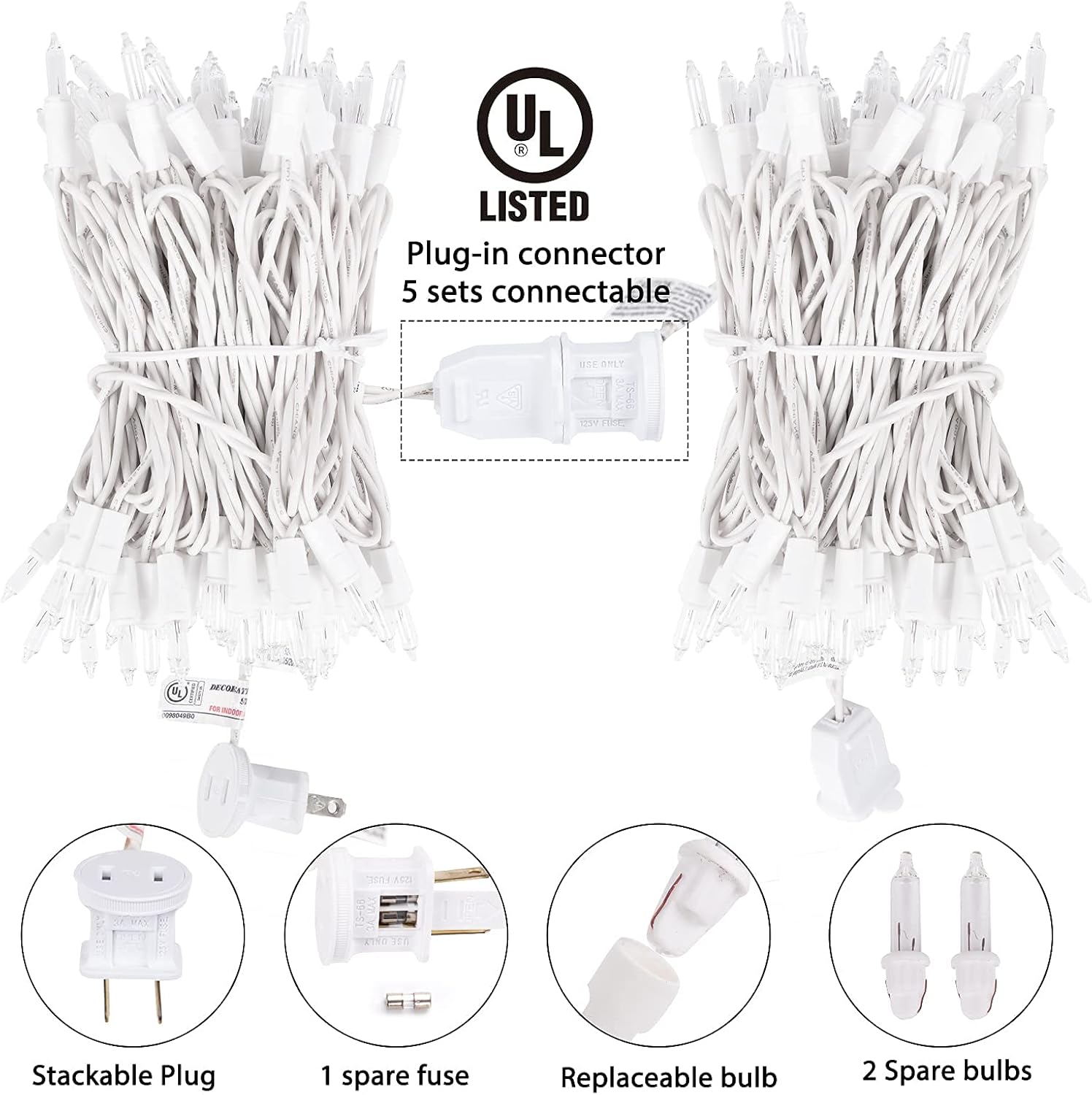 - Easy to Install: The Christmas light sets come with 1 spare fuses and 2 spare bulbs for easy replacement. This mini Christmas light can be connected end-to-end and can be extended to a longer connection length, making it be suitable for different decoration needs. It can be easily installed without additional tools