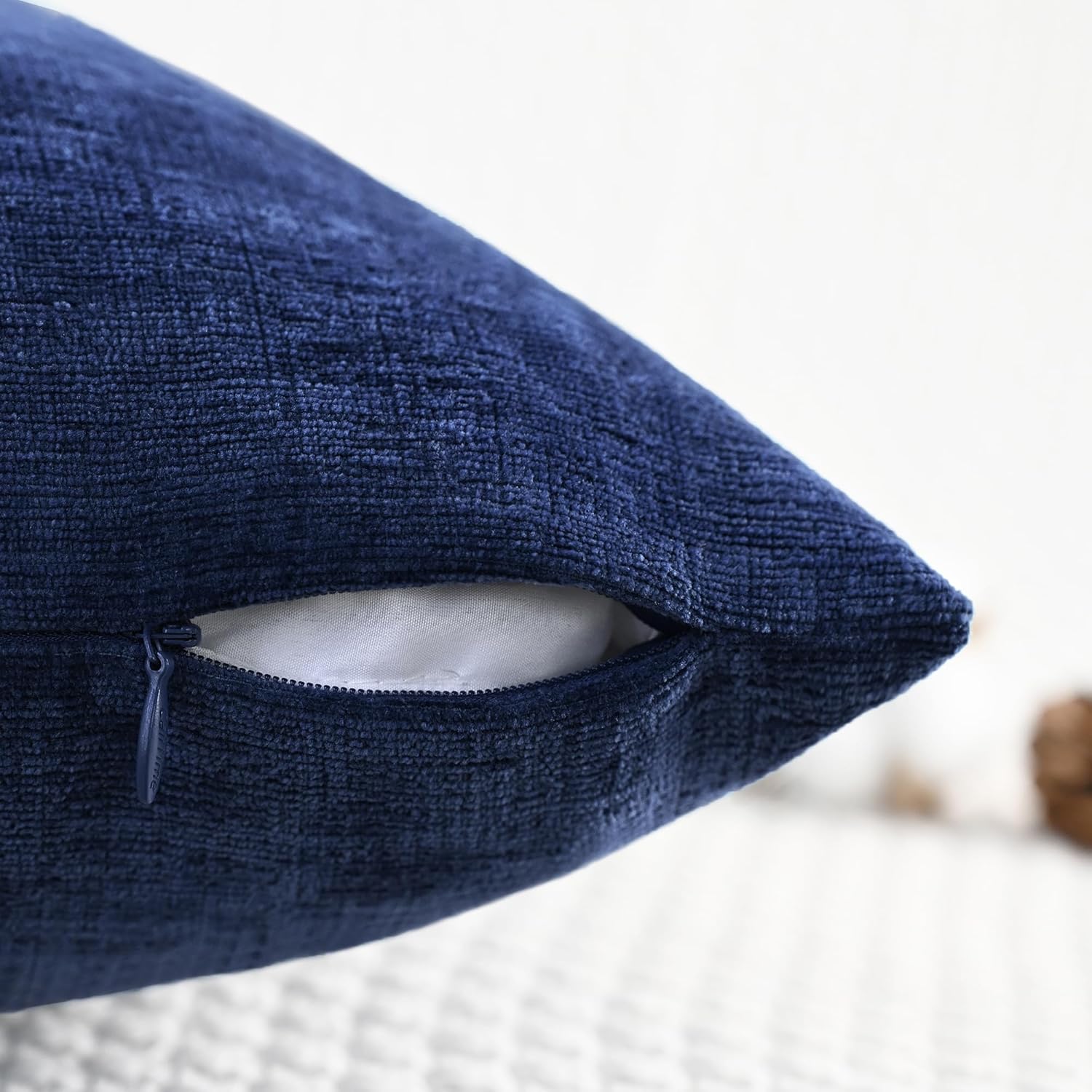 CaliTime Throw Pillow Covers Decorative 12 X 20 Inches Pack of 2 Cozy Chenille Cushion Cases for Couch Sofa Bed Living Room Home Navy Blue