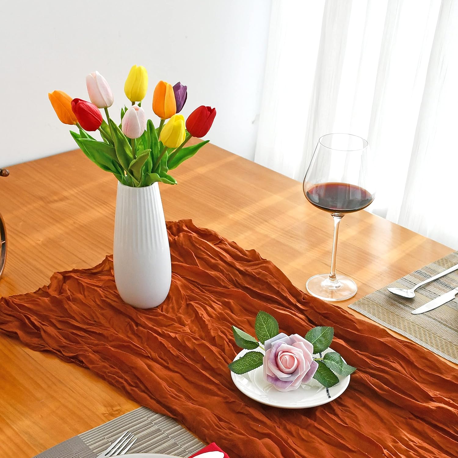 - Elegant & Realistic Centerpiece Flowers.Crafted to elevate any table setting, these artificial tulips feature soft-touch PU petals and natural curves that deliver graceful realism—perfect for weddings, dining centerpieces, or home styling.