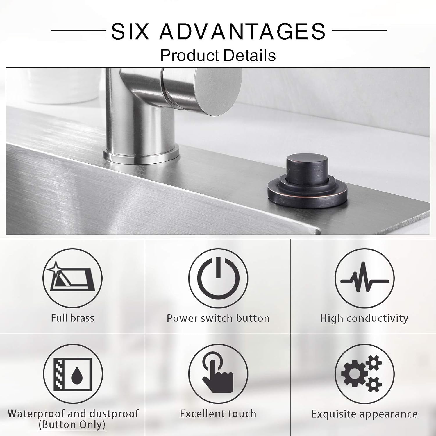 - Finish: SINKINGDOM Air switch Button (Solid Brass Made), Available in Six Colors. High Quality, Durable Paint Finish.