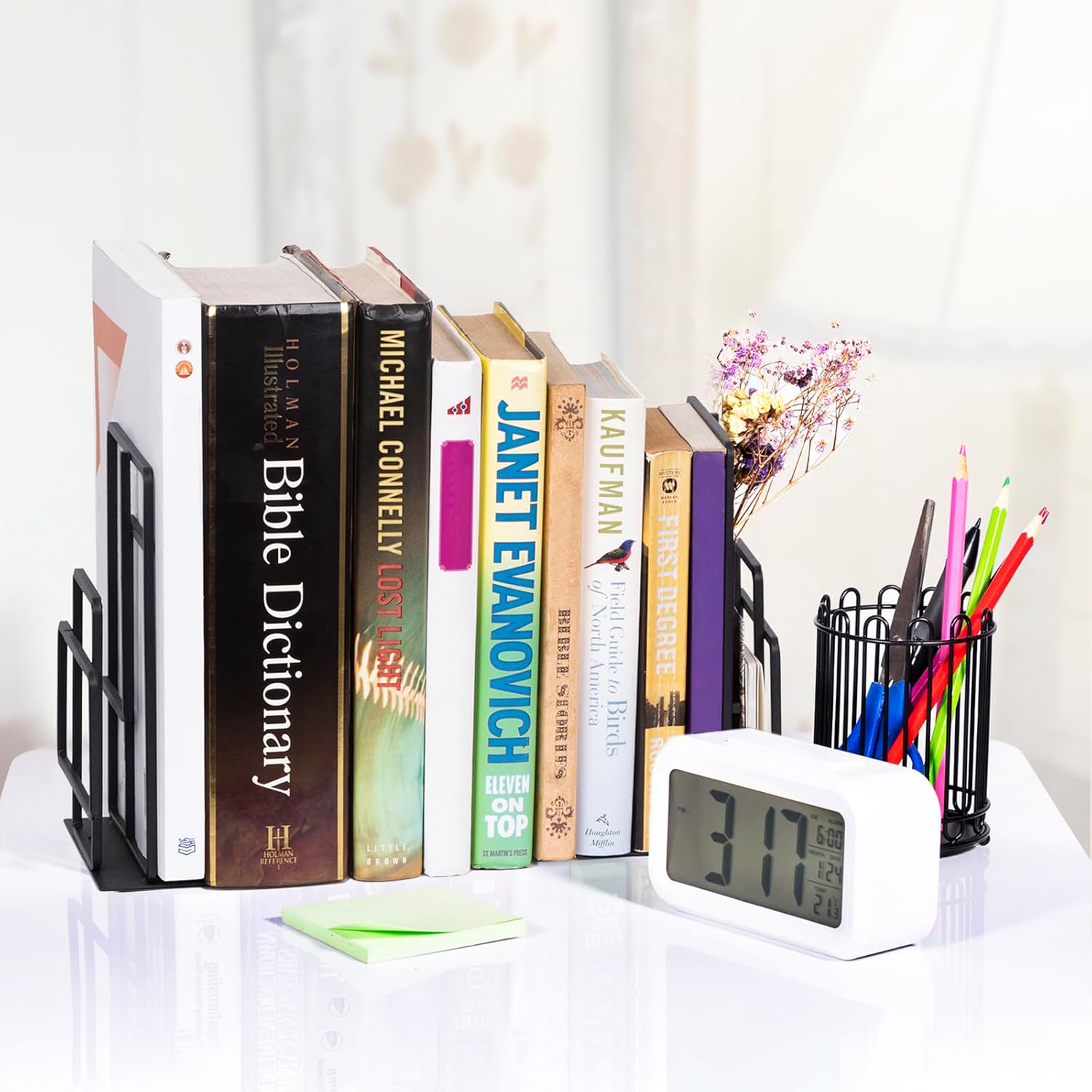 - Anti-slip & Non-scratching Mat: Non-skid bottom provides sufficient friction to avoid slipping and has sufficient stability.The metal bookends hold heavy books but won't scratch your furniture.