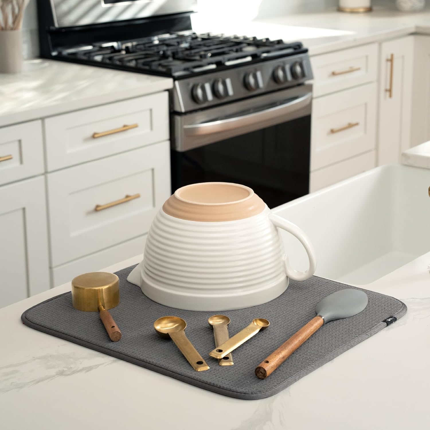 - Dish drying mats for kitchen counter are reusable, machine washable, and easy to store for kitchen organization; durable construction will not chip or break like a stone dish drying mat for kitchen