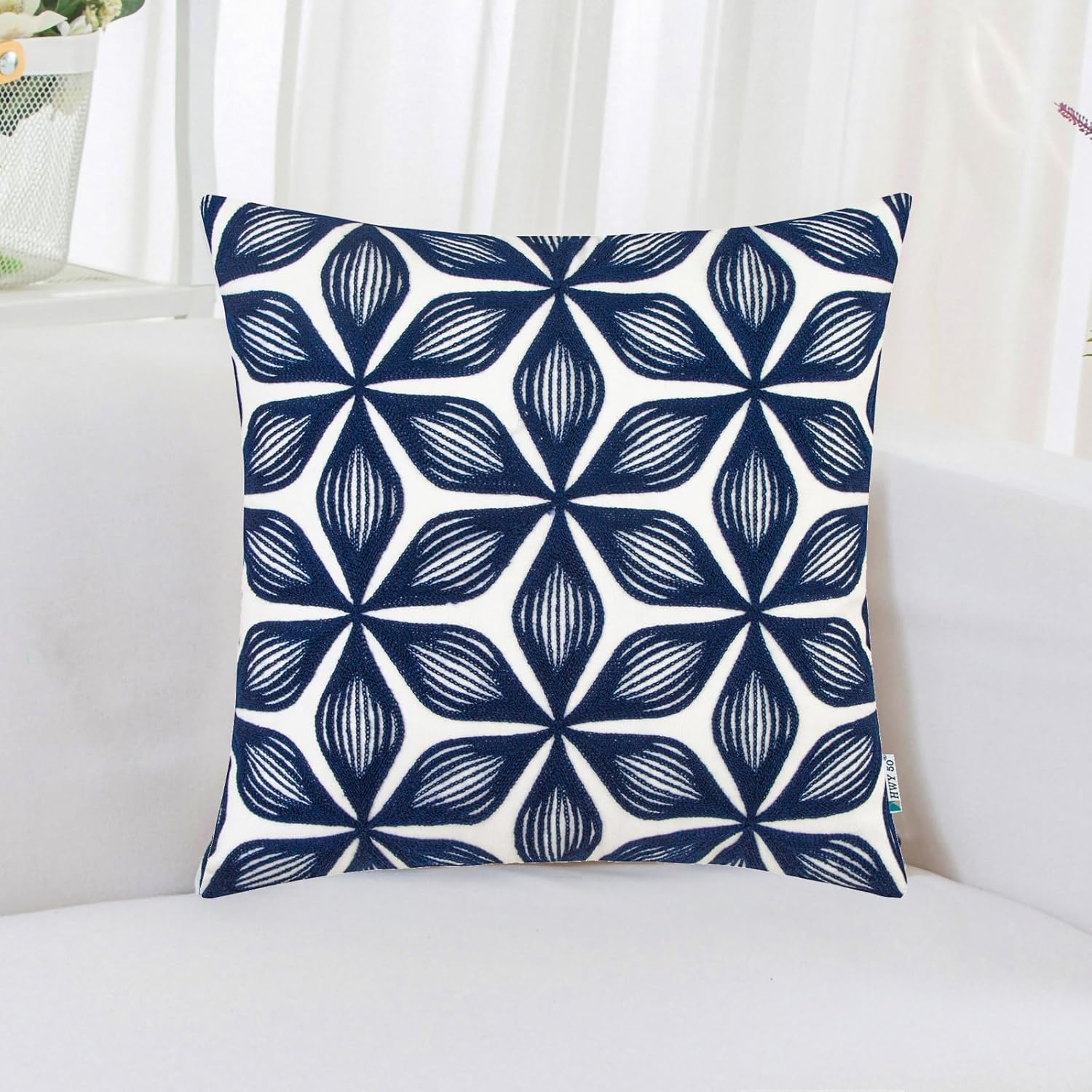 - Size & Material: This 18 x 18 inch (18 by 18) square throw pillow cover is made of 100% thick cotton canvas for durability. The crisp white fabric is soft yet sturdy, featuring beautiful single-sided embroidery for an elegant touch
