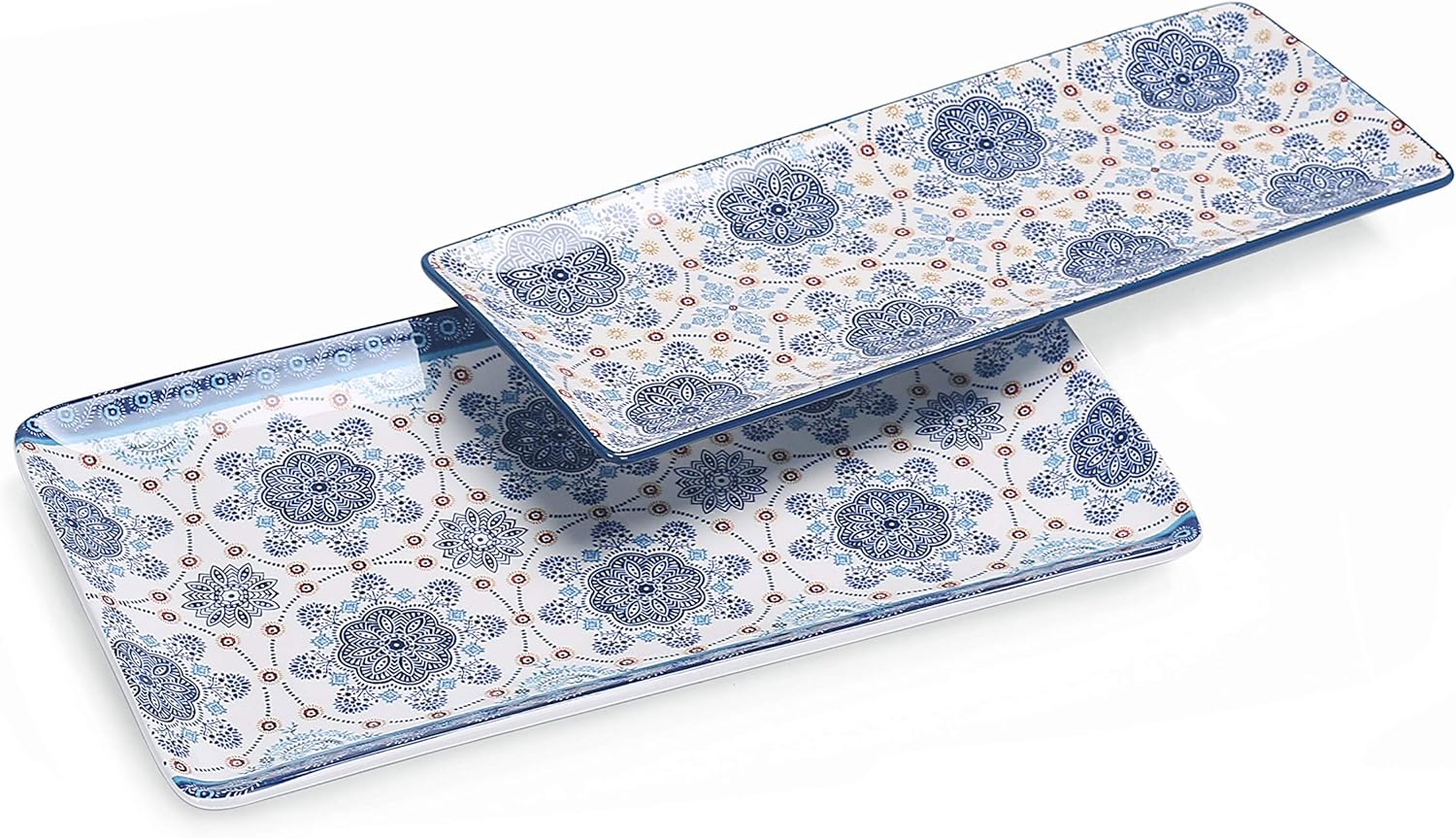 - | ORIGINAL DESIGN | Set of 2 Ceramics 14" rectangular serving platter(1 large 1 medium) designed by Bico comes with a glossy and smooth finish, it can be your perfect choice for both daily household use or hosting grand gatherings for all occasions