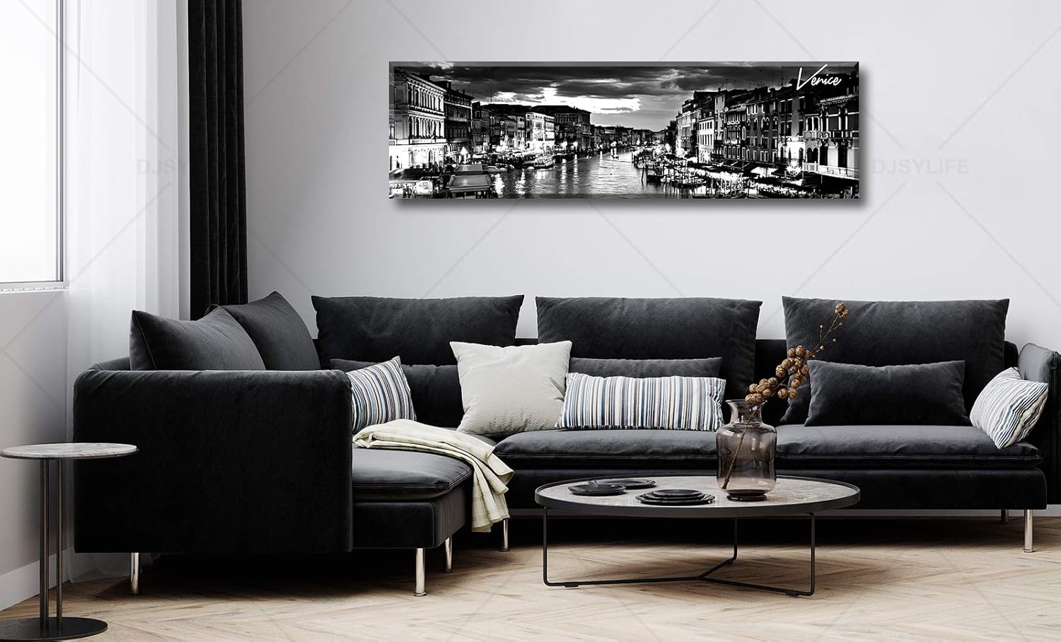 - Black and White Wall Art: skyline pictures for bedroom, Italy venice grand canal city skyline ,black art theme room decor is very suitable for gray, yellow, blue, brown, silver, gold, or bohemian style walls. Applicable place:Bedroom wall decor, kitchen wall decor, wall decorations for living room, bathroom wall decor, rustic wall decor, family wall decor, office wall decor, black wall decor, dining room wall decor, modern wall decor, blue wall decor, inspirational wall art.