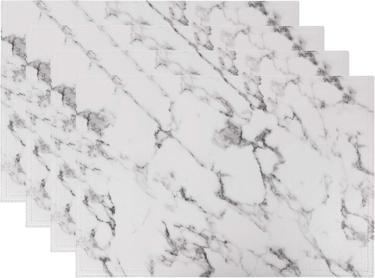 Marble Faux Leather PU Placemats, Set of 4, Washable, Stain Resistant for Dining Room Kitchen Table Decor
