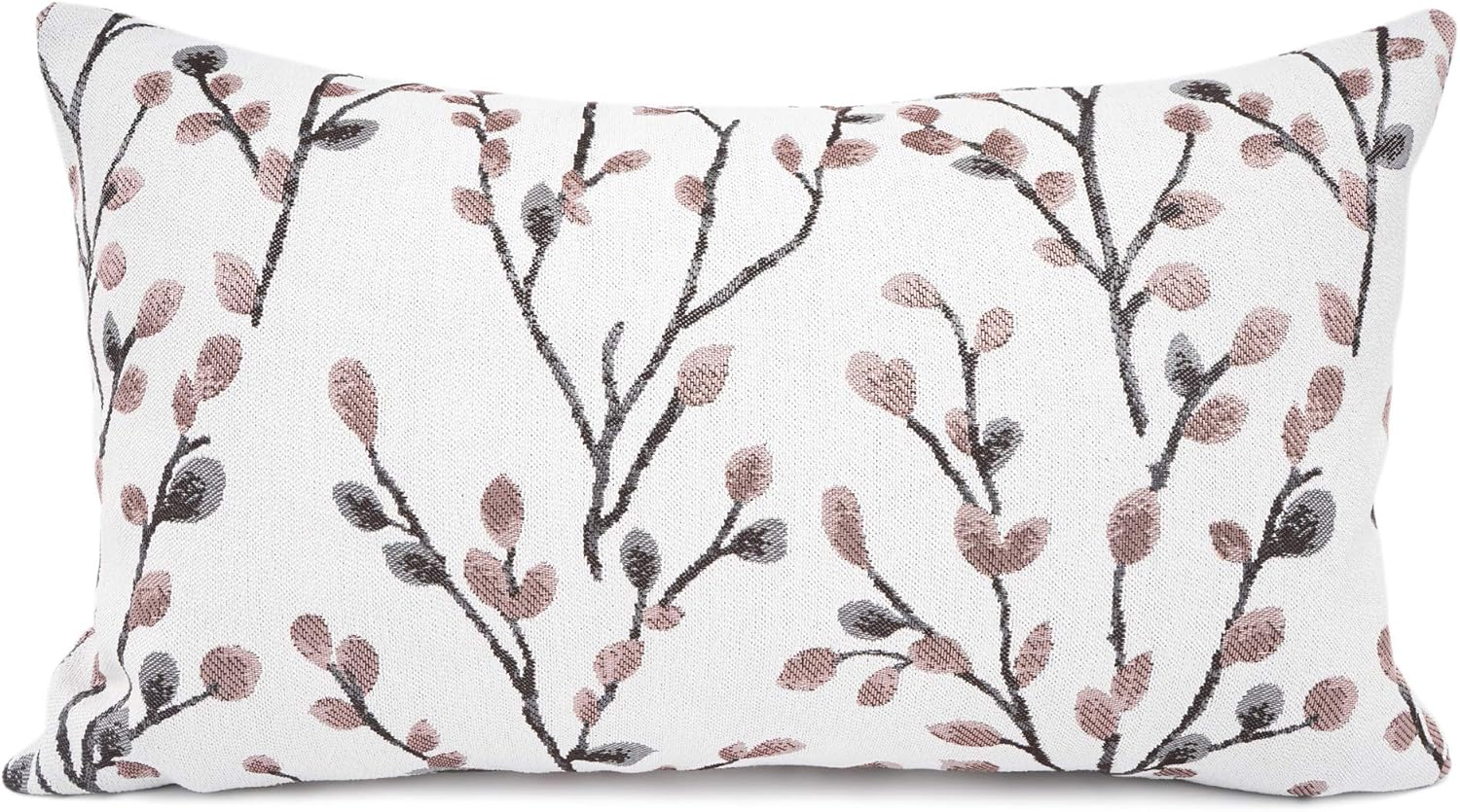 YOUR SMILE Classical Embroidery Jacquard Farmhouse Oblong Rectangle Chenille Red Leaf Decorative Throw Pillow Case,12x20 inch