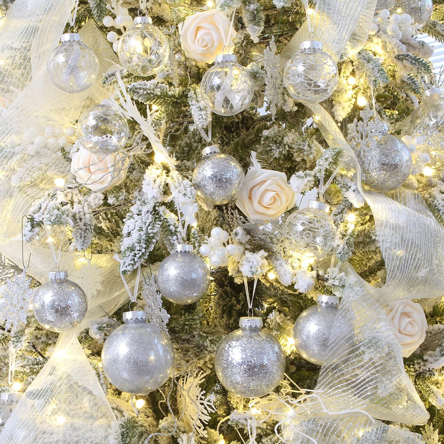 - TRANSPARENT & SPARKLING - These Christmas ball ornaments feature clear glaze base with sparkling decorations like glitter, sequins, tinsel and beads to provide a stunning shimmering look in the light. They will be perfect for decorating your home and become part of your holiday tradition