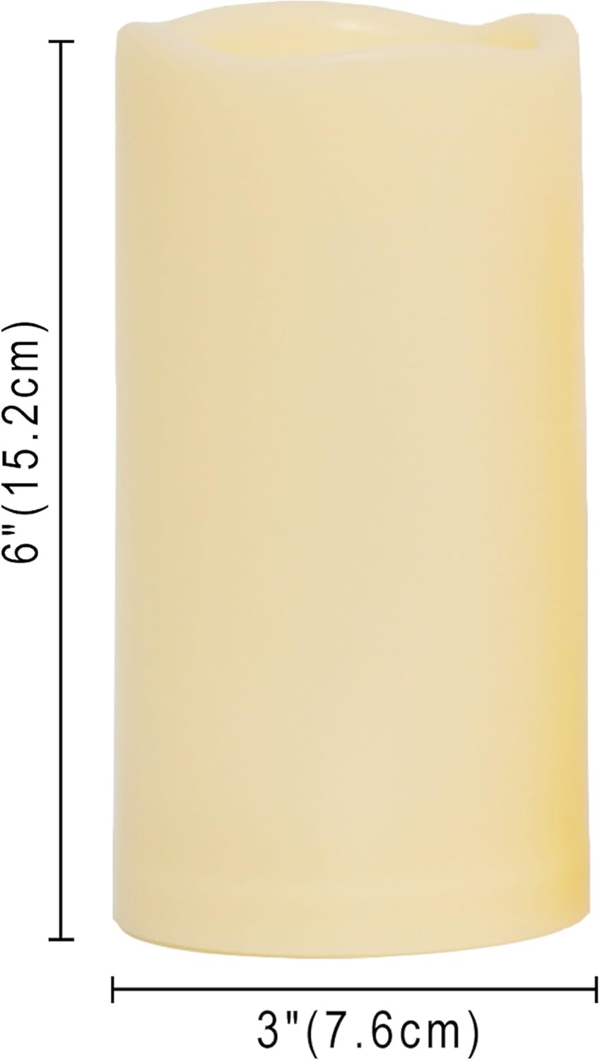 CANDLE CHOICE Waterproof Outdoor Battery Operated Flameless Pillar Candle with Timer Realistic Flickering Plastic Fake Electric LED Light for Lantern Garden Wedding Christmas Decorations 3x6 Inches