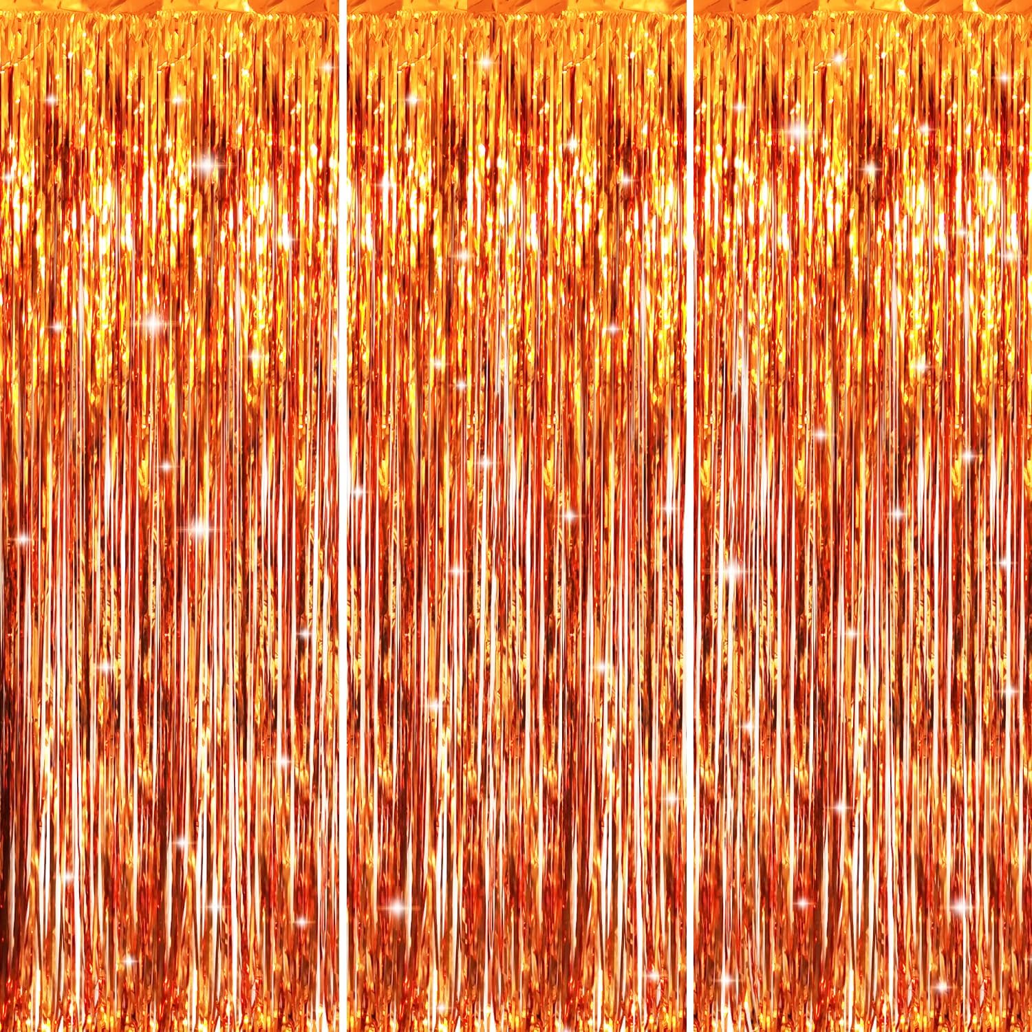 - Package Includes:3 pack orange foil fringe curtains,3.2 ft x9.8 ft each,suitable for hanging on a door or coverage a wall fully
