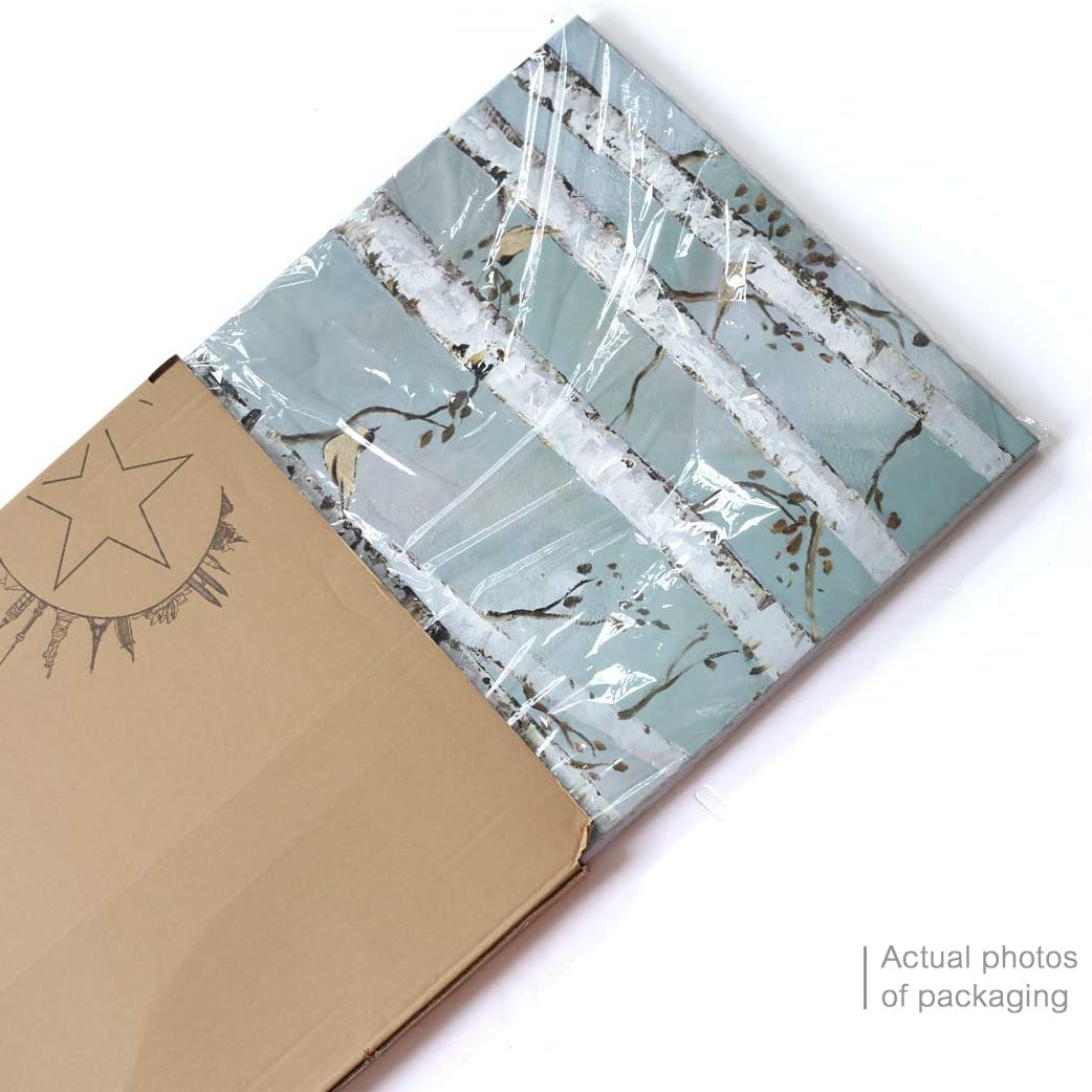 amatop Teal Wall Art 100% Hand-Painted Landscape Forest Oil Painting on Canvas Original Framed Artwork Gold Bird Birch Tree Artwork White Birch at Night for Living Room Bedroom Office Decor 32x16inch