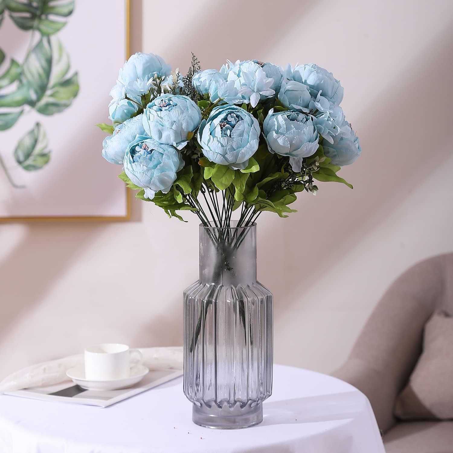 Duovlo Artificial Peony Silk Flowers Fake Flowers Vintage Wedding Home Decoration,Pack of 1 (Spring Blue)