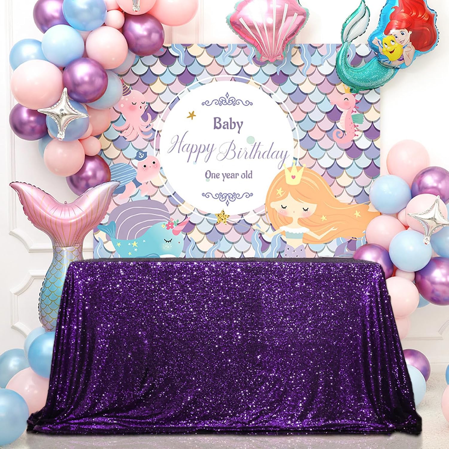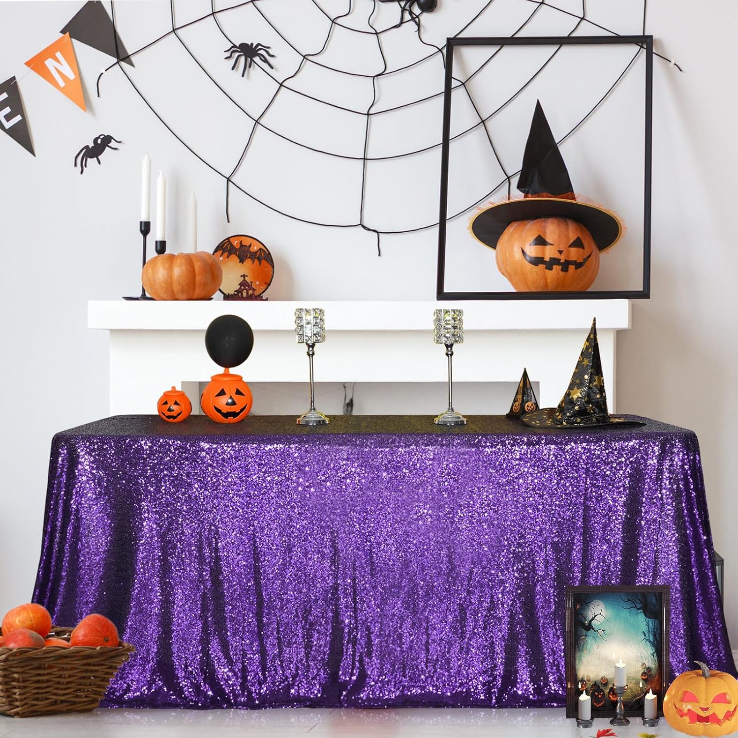 SquarePie Sequin Tablecloth 90 x 156 Inch Purple Sparkly Table Cloth for Wedding Halloween Party