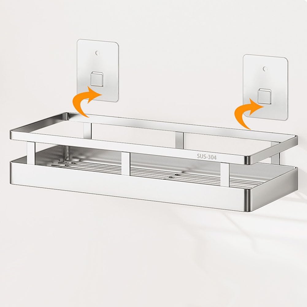 SUS304 Stainless steel Wall Mount Spice Rack Storage Basket - Seasoning Container, Kitchen Spice Organizer -Kitchen Seasoning Hanging Rack - Bathroom Shelf (Silver)
