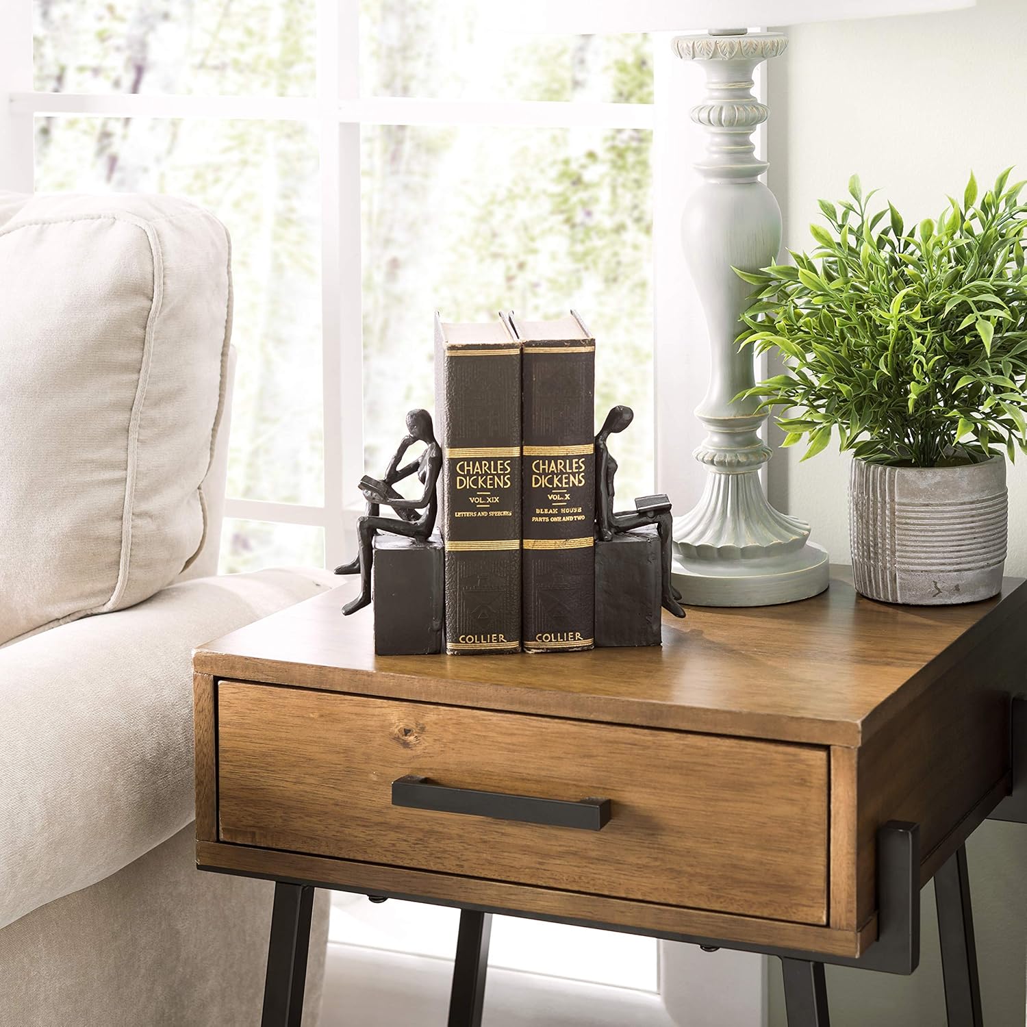 Danya B. Metal Art Shelf Decor - Decorative Cast Iron Bookend Set - Man and Woman Reading on a Block