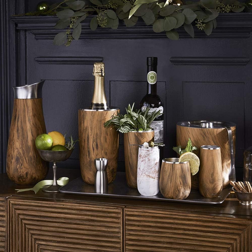 S’well Stainless Steel Ice Bucket with Tongs, 68oz Capacity, Teakwood Finish, Triple-Layer Vacuum Insulated to Keep Ice Colder Longer, BPA-Free Barware