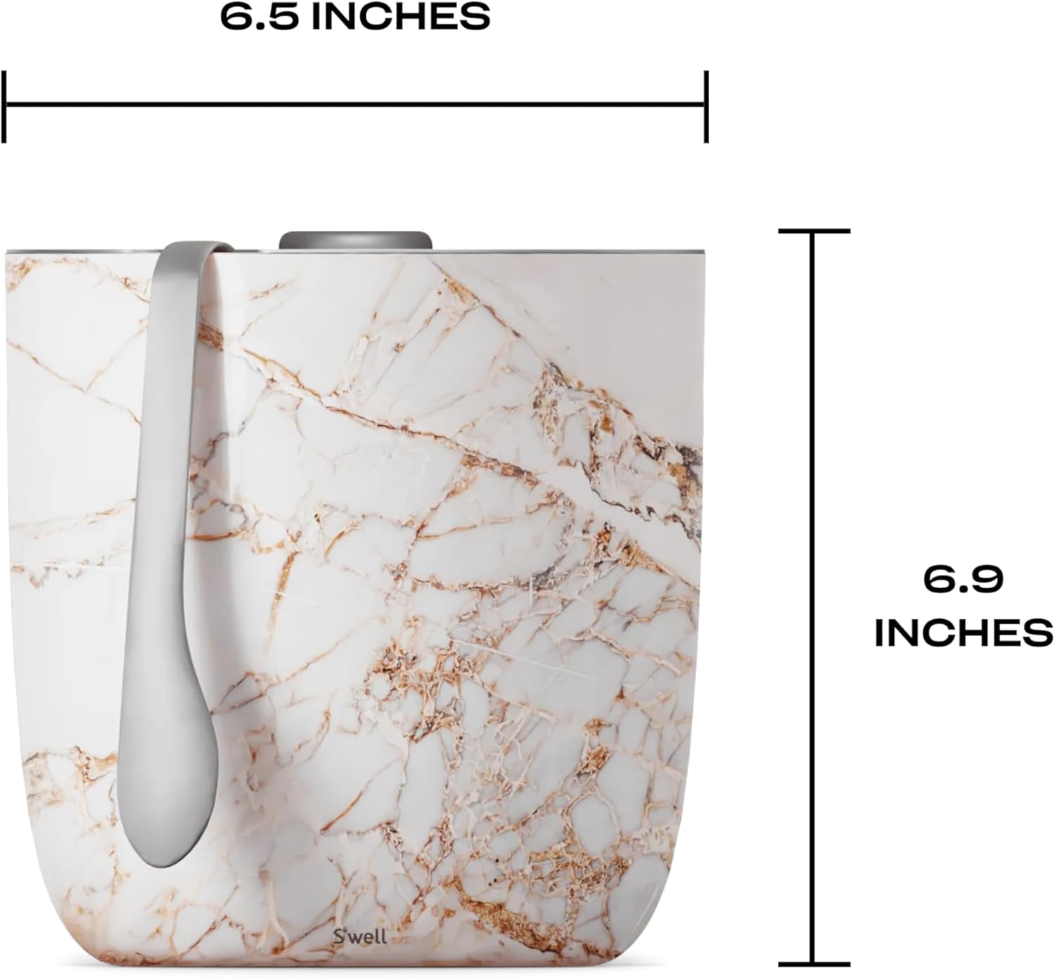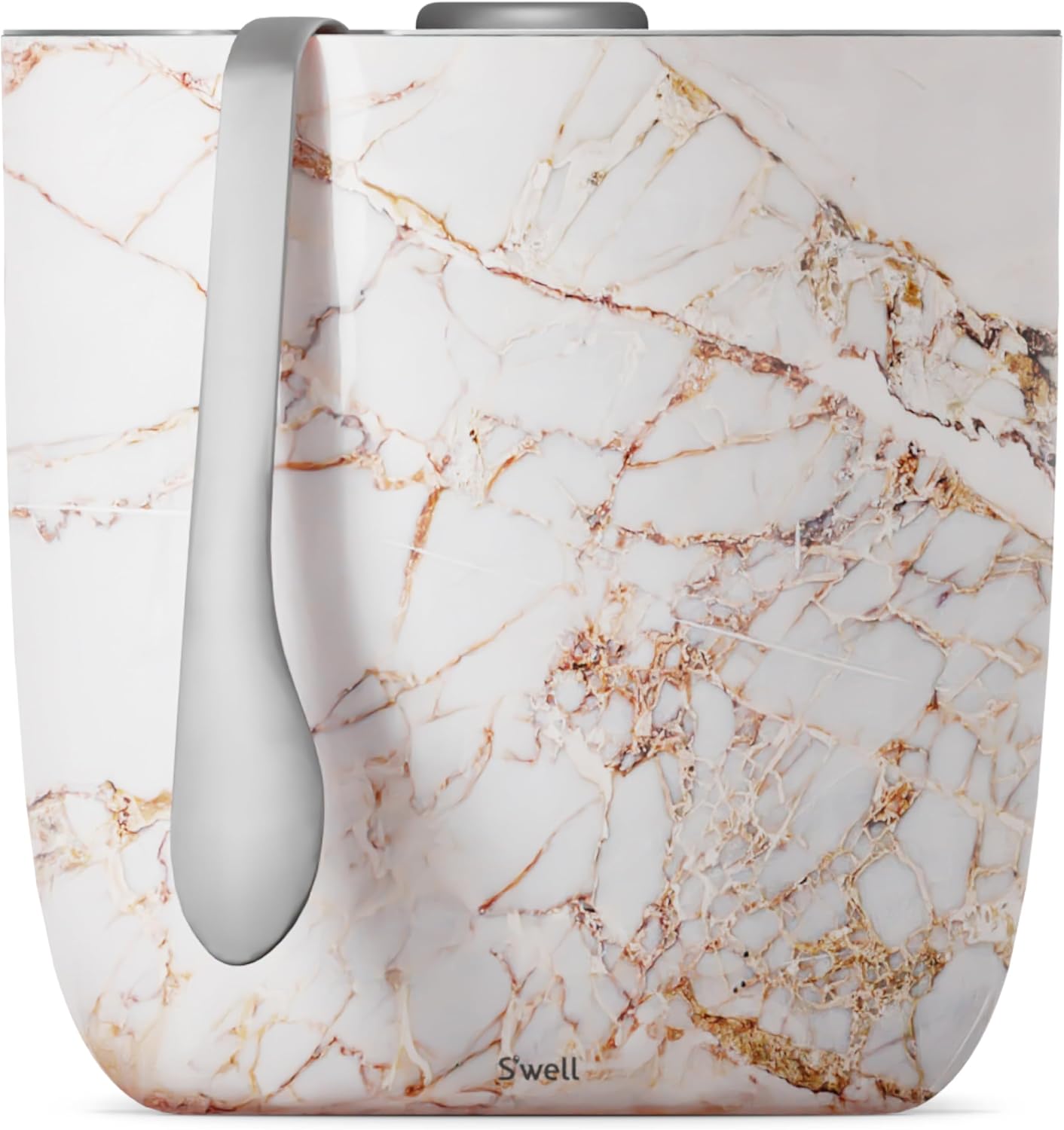 - TRIPLE-LAYERED INSULATION: S’well 68oz Ice Bucket with Tongs. Triple-layered, vacuum-insulated stainless steel construction. Exclusive Therma-S’well Technology keeps ice colder for longer. Includes tongs for easy ice grabbing. Sleek and beautifully crafted.
