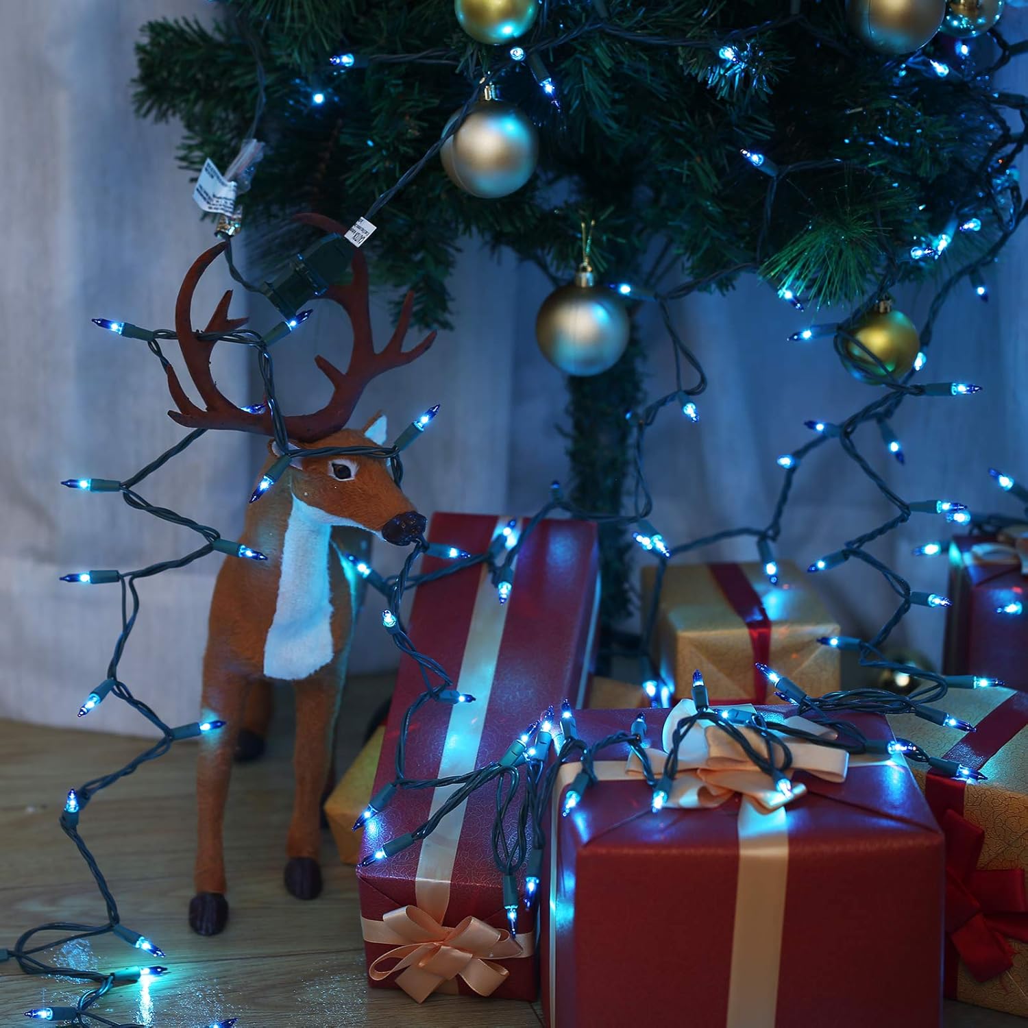 - 300 Counts Blue Mini Lights: Old-fashion Blue incandescent Christmas light set, creates a festive atmosphere, celebrates Christmas, New Year, Birthdays and special holidays, cast a magical look to your house and garden, and impress your family friends, and relatives with this easy to set up!